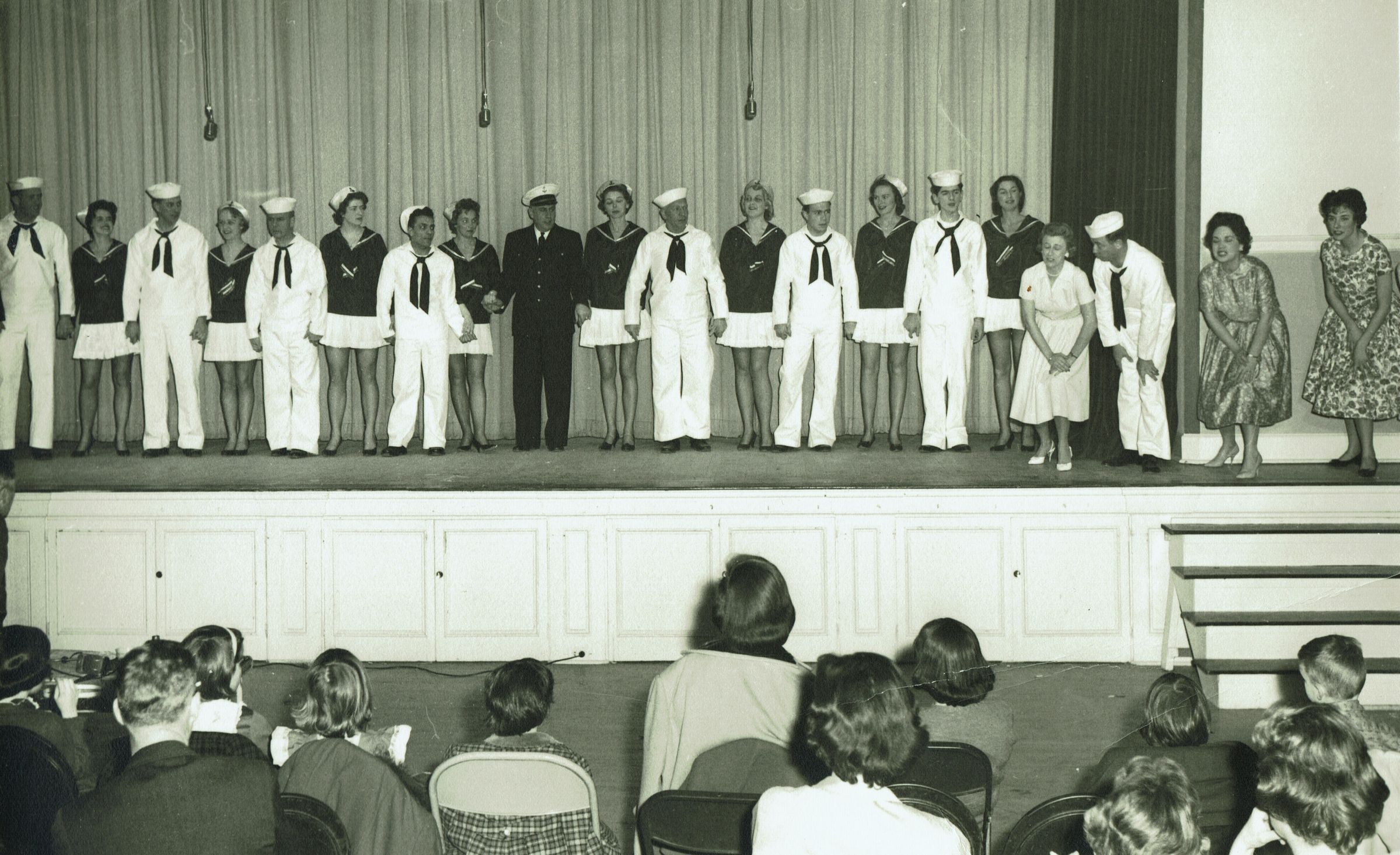 Pair of photographs from a performance in February 1961. Details of photos are unknown. Inscription on back gives date.Acquisition