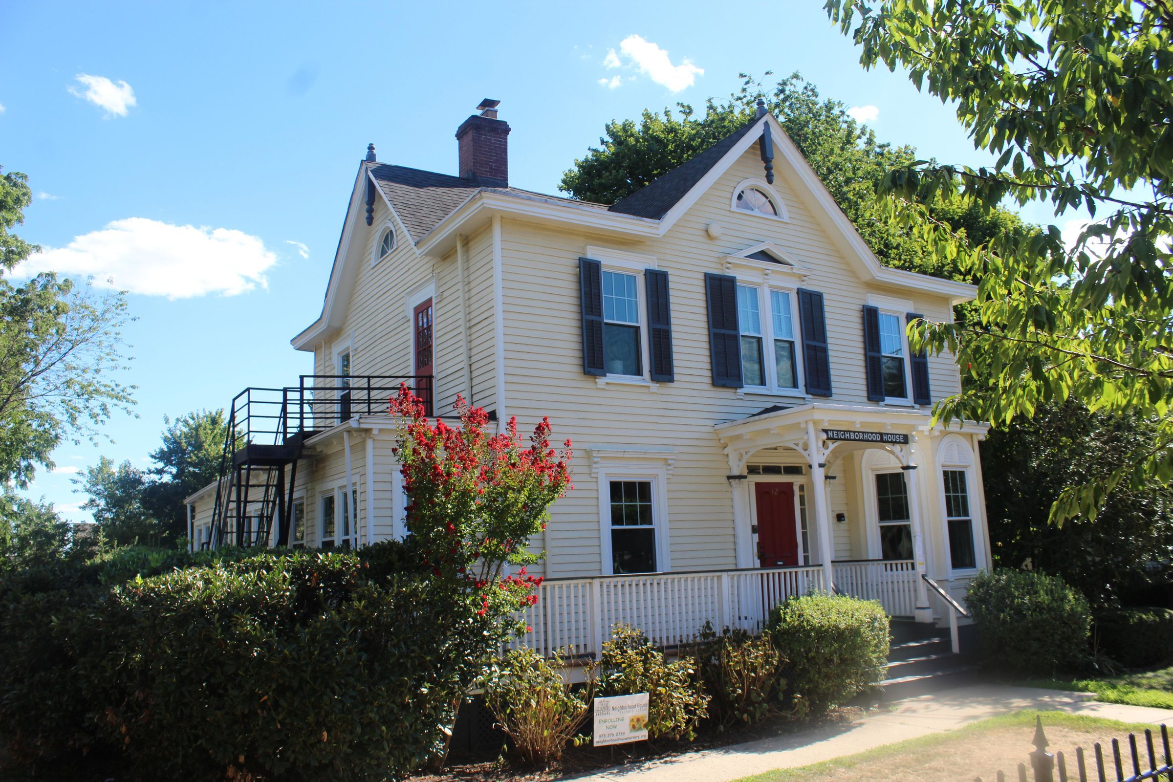 On November 17, 1903, the group was reorganized again and renamed The Neighborhood Association of Millburn Township with Mrs. Hartshorn as its first president. In 1918, the house at 12 Taylor Street was given to the Association by Mr. and Mrs John Taylor. In 1920, the Day Nursery (Nursery School) was opened. Neighborhood House is now operated as a nursery school.