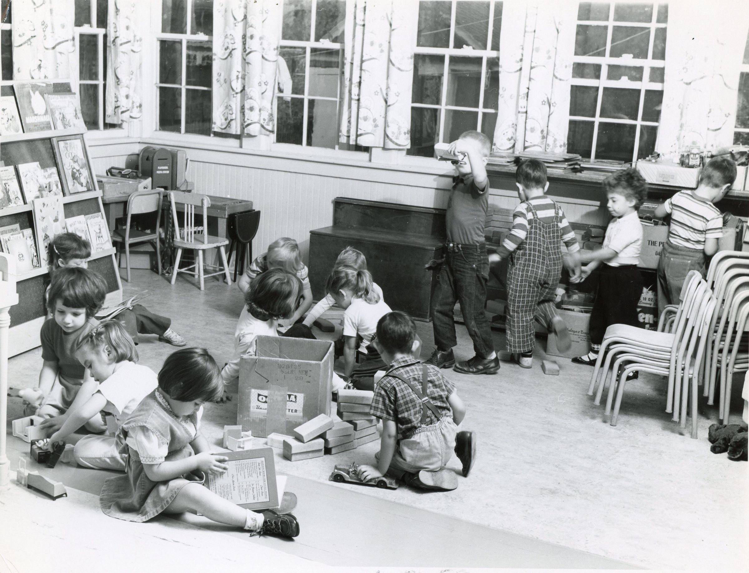 Photograph of kids at the Neighborhood House Pre-School from c. 1956.