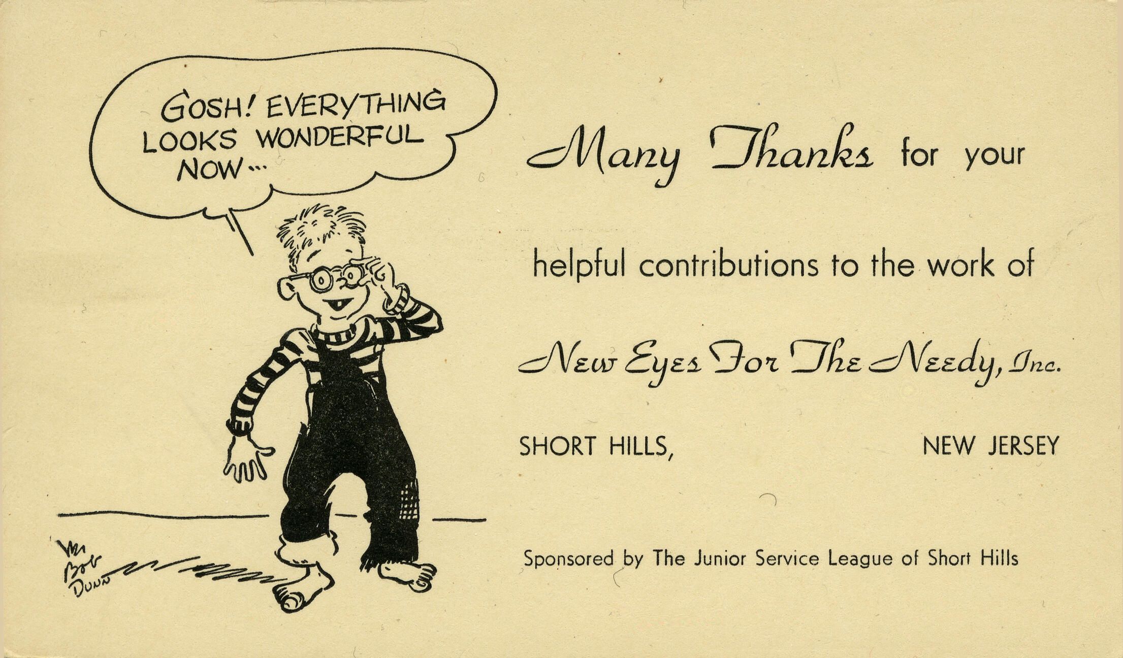 New Eyes for the Needy: Thank you postcard with Bob Dunn illustrationEntry/Object ID