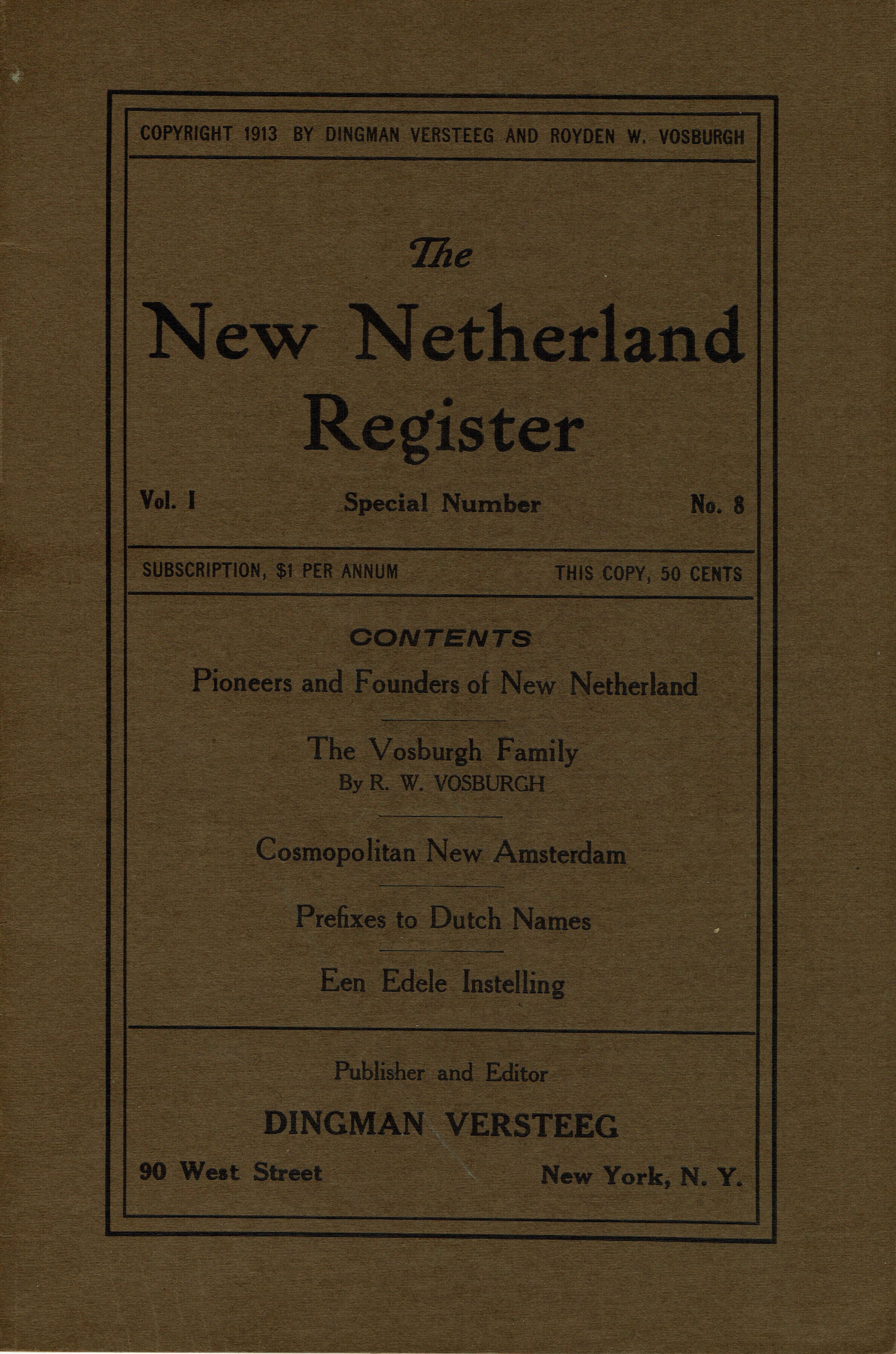 New Netherland Register, 1,8 (1913). Pioneers and Founders of New Netherland.Collection