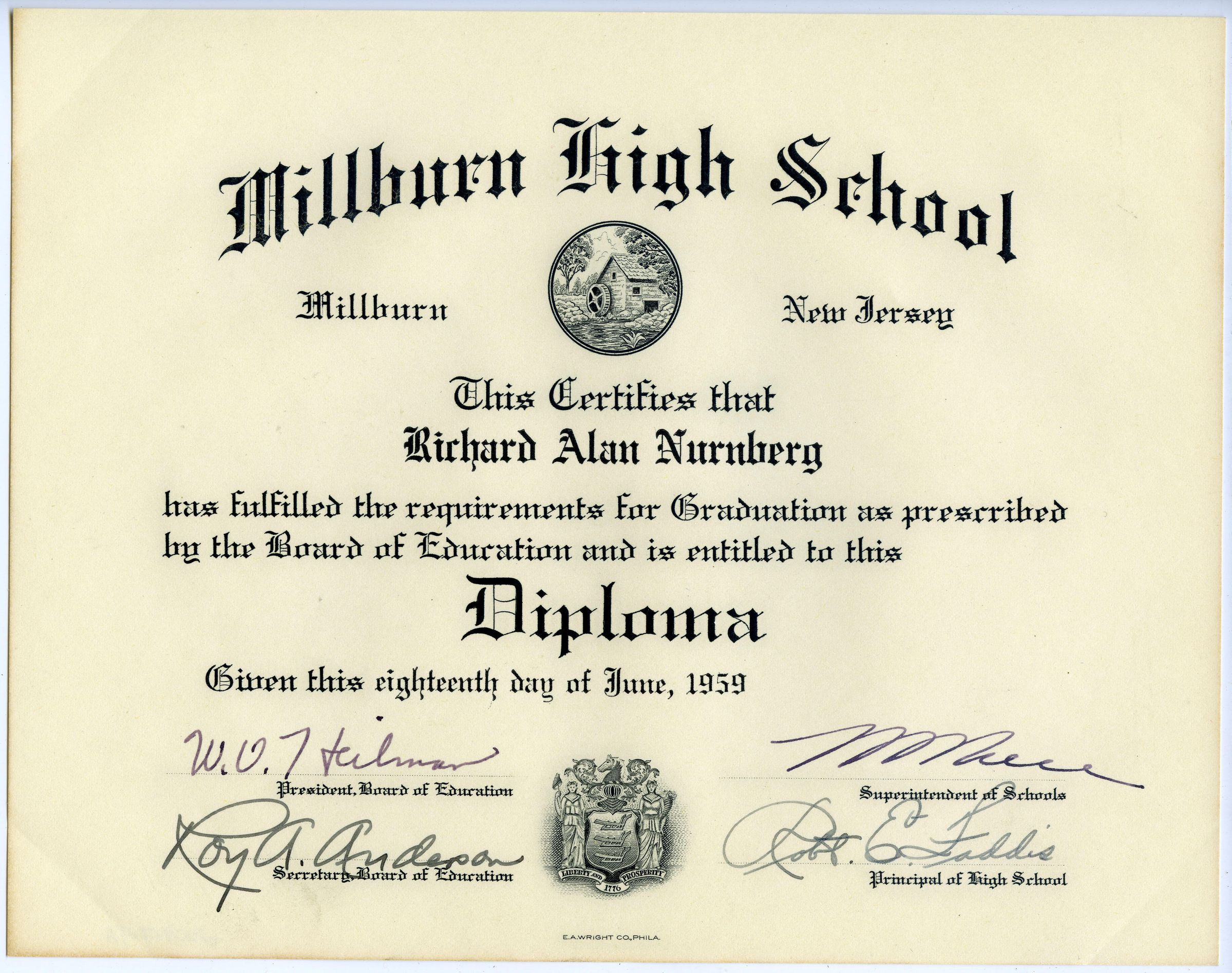 Nurnberg: Richard Alan Nurnberg Millburn High School Diploma, 1959