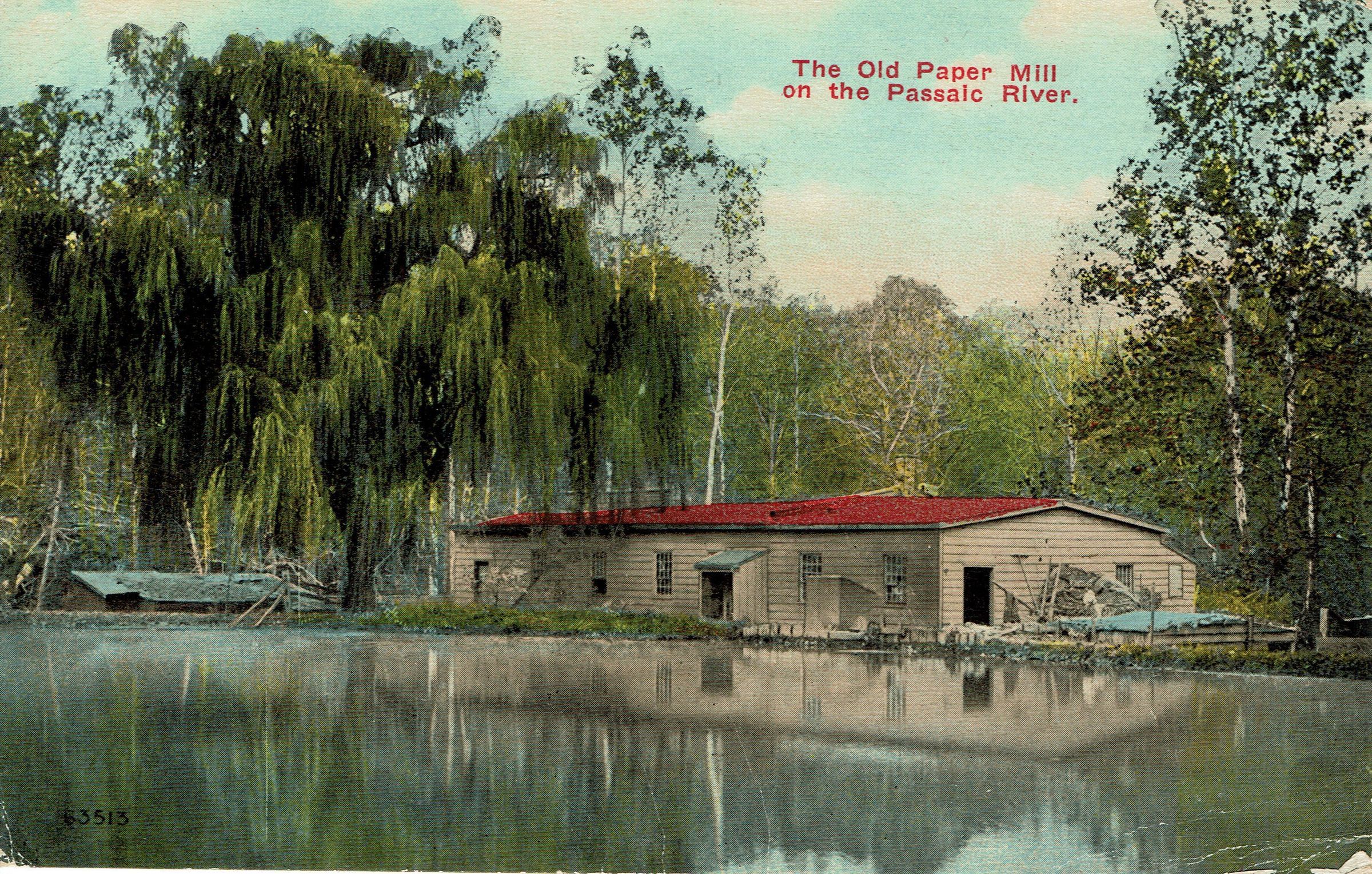 Postally unused, colorized postcard of a paper mill on the Passaic River.Collection