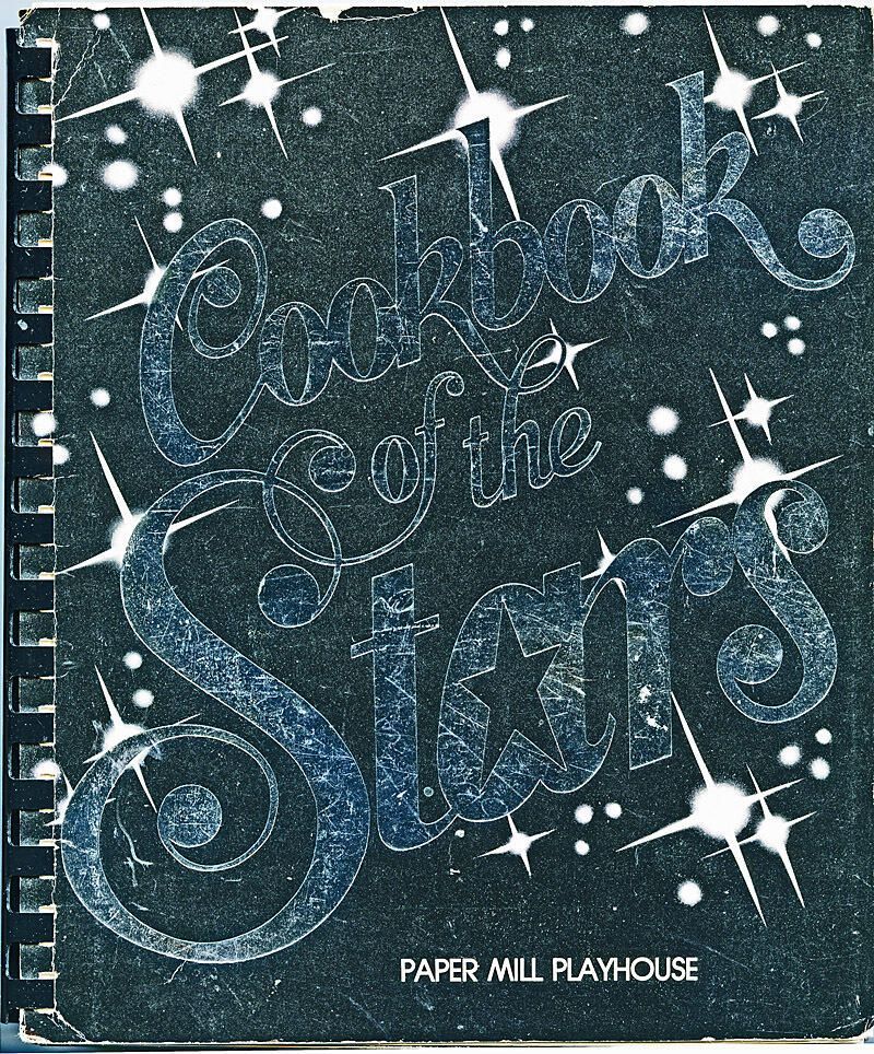 1985 112-page paper cover "Cookbook of the Stars" cookbook from the Paper Mill Playhouse. The spiral-bound book has recipes contributed by actors and actresses who "starred in one or more productions at the Paper Mill Playhouse, Millburn, NJ.". The front and back covers show edgewear and bumped corners. The inside front and back covers have yellowing on the edges.Acquisition