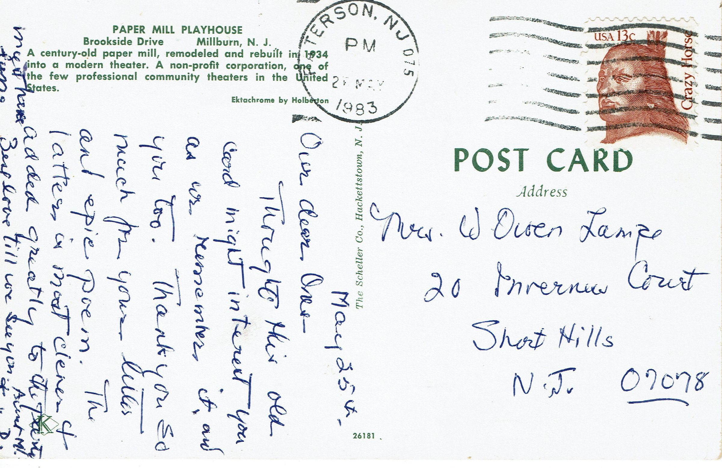 Second copy sent to Owen Lampe, postmarked May 25, 1983.Collection