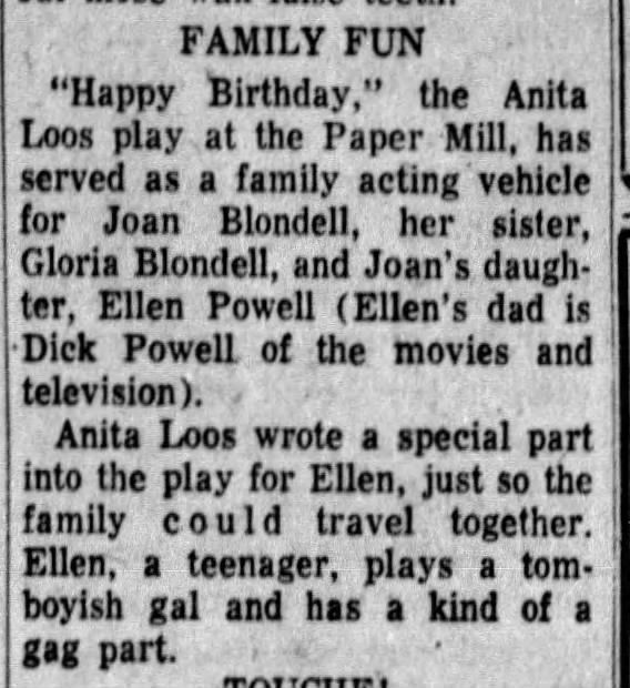 Paper Mill Playhouse Press Photo: Happy Birthday, 1955Entry/Object ID