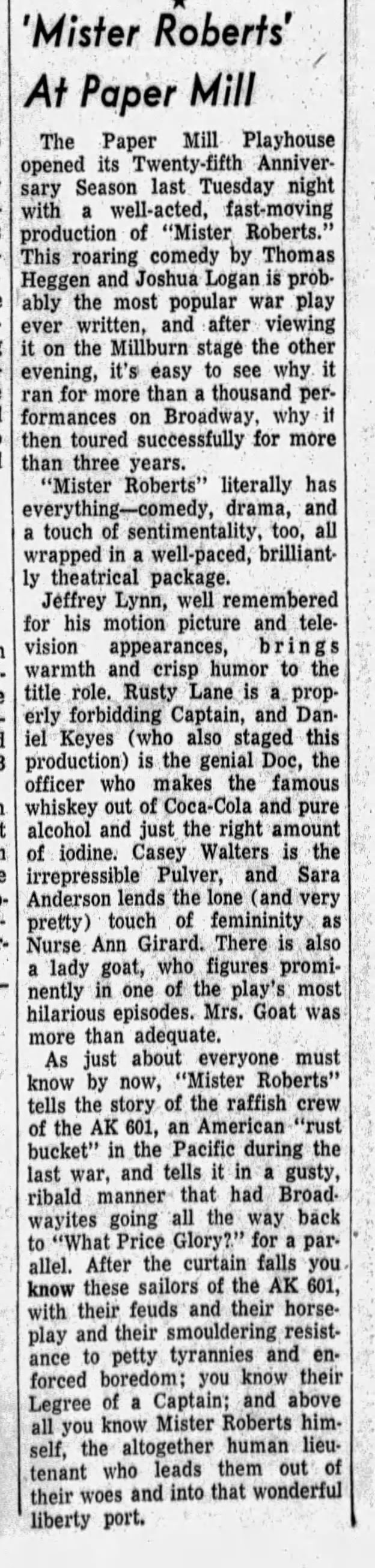 Paper Mill Playhouse Press Photo: Mister Roberts, 1954Entry/Object ID