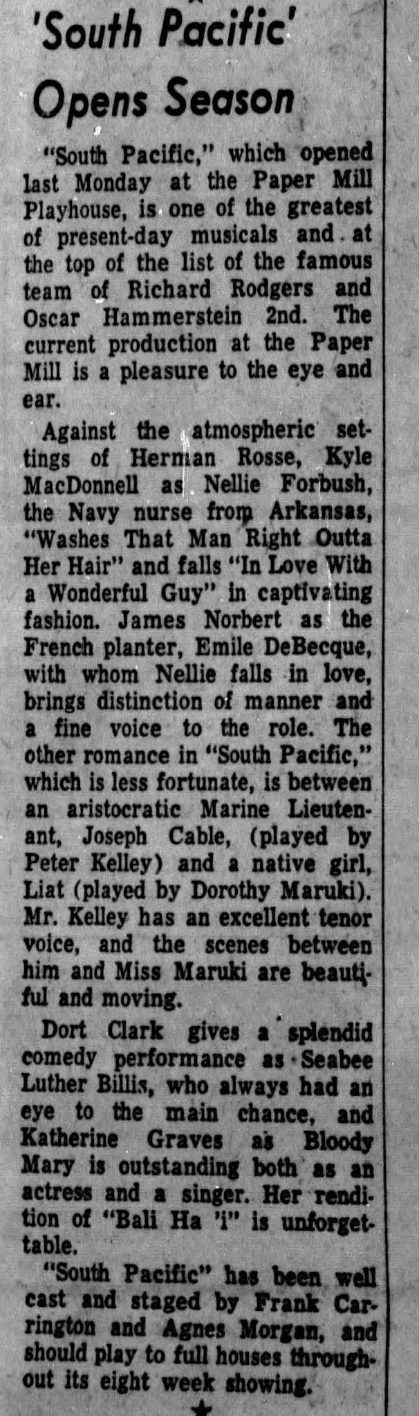Paper Mill Playhouse Press Photo: South Pacific, 1955Entry/Object ID