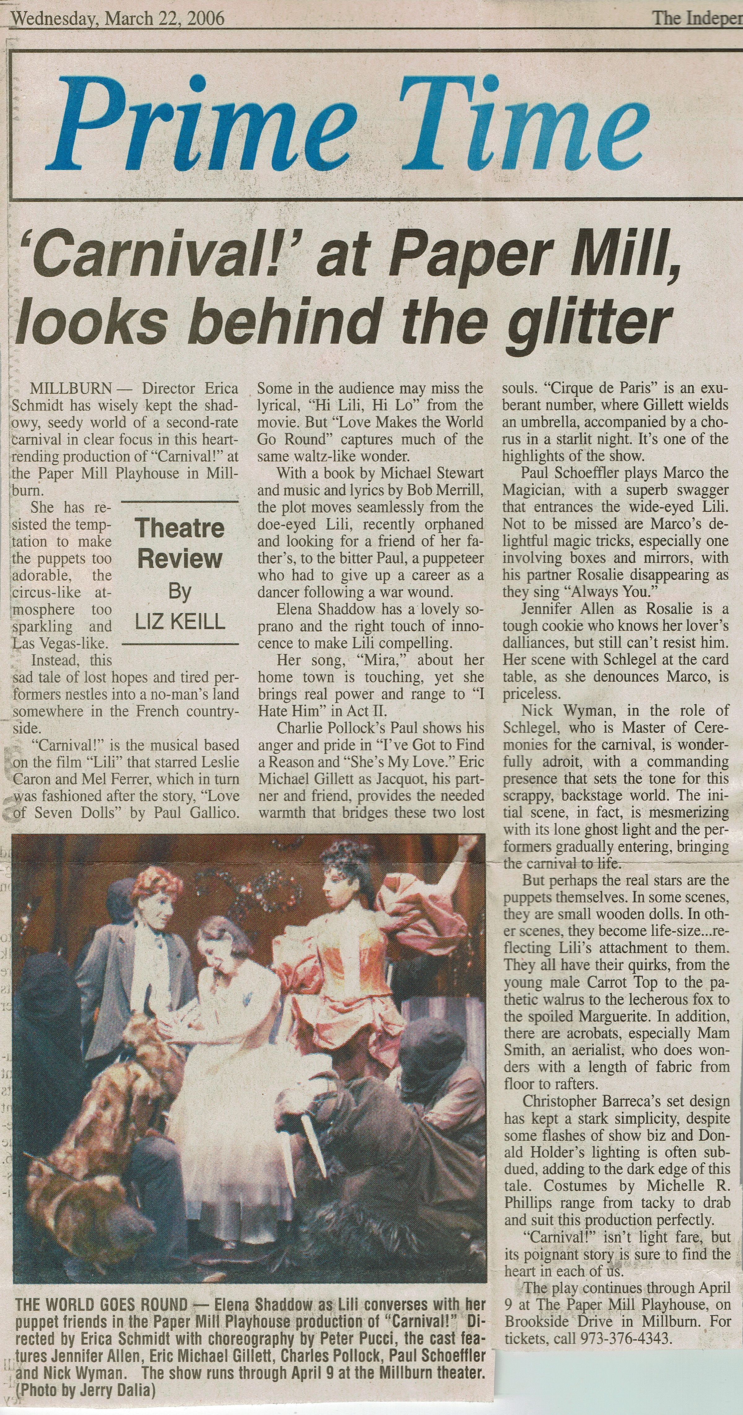 Paper Mill Playhouse Program: Carnival!, 2006Entry/Object ID