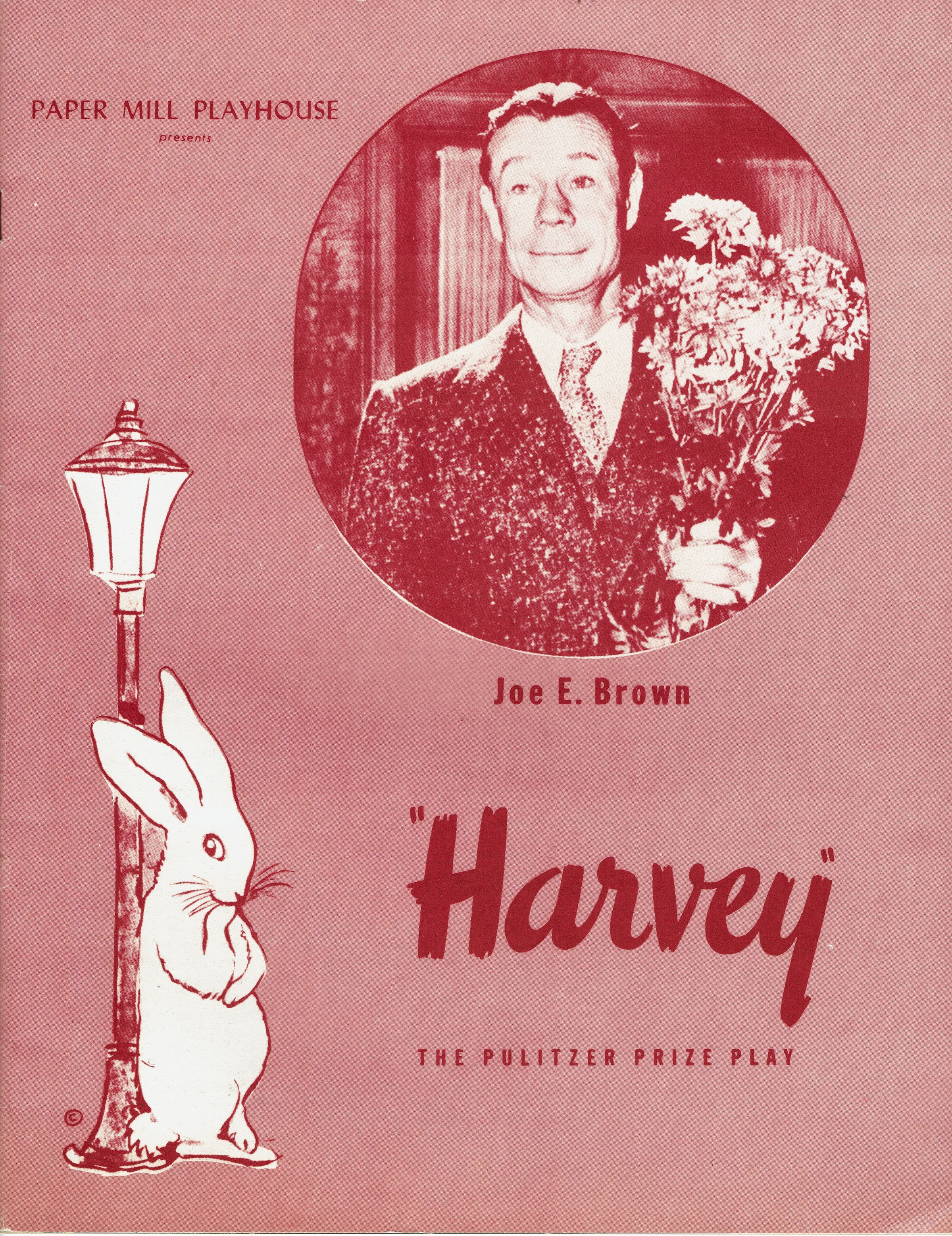 Souvenir Program for 1955 Paper Mill Playhouse Production of "Harvey" with Joe E. Brown and Nydia Westman. Deluxe fully illustrated program with photographs and articles about Paper Mill Playhouse. 22 pp. (Unpaginated)Acquisition
