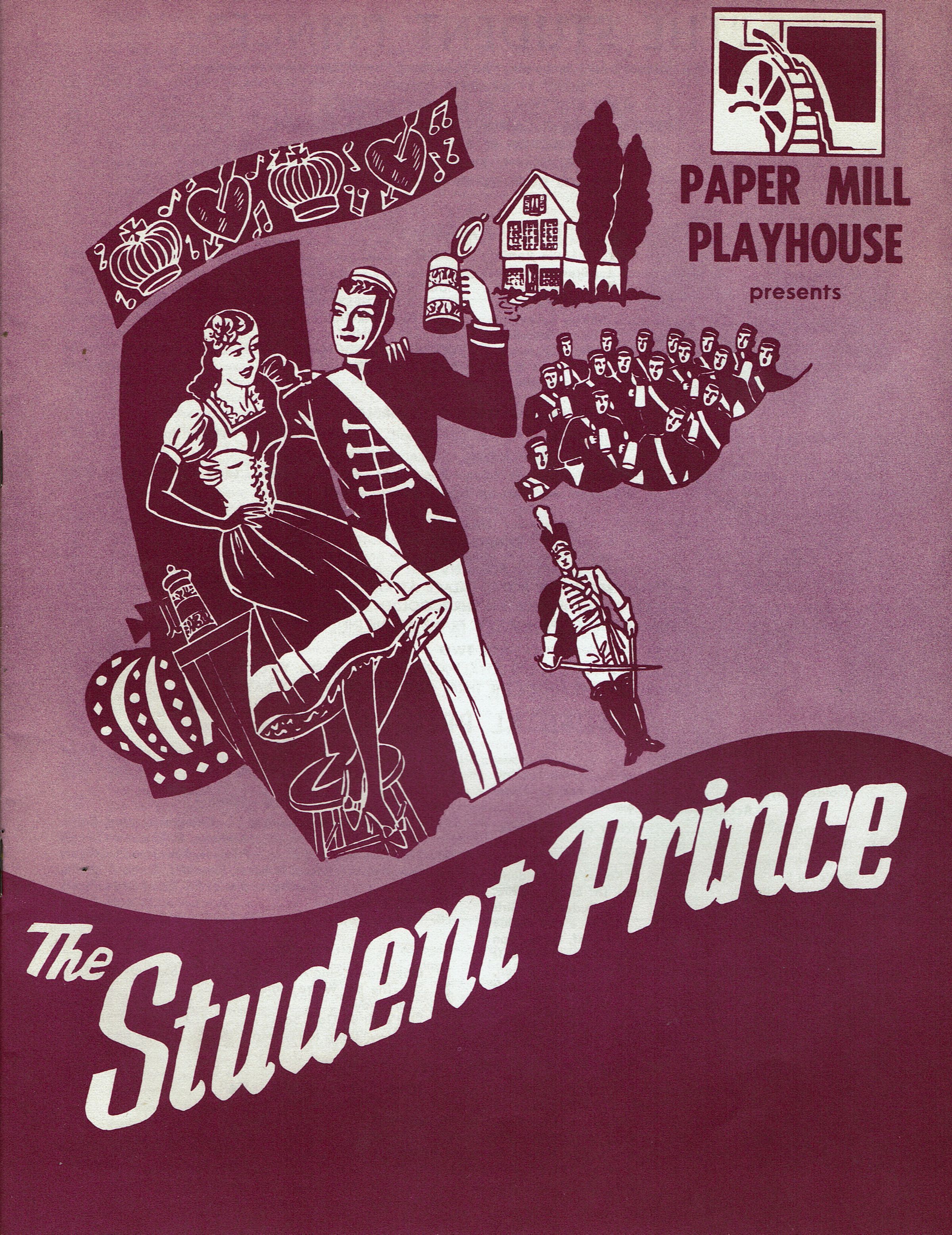 Souvenir Program for Paper Mill Playhouse Production of "The Student Prince." Deluxe fully illustrated program with photographs of cast members, producers and articles about Paper Mill Playhouse. 20 pp. (Unpaginated)Collection