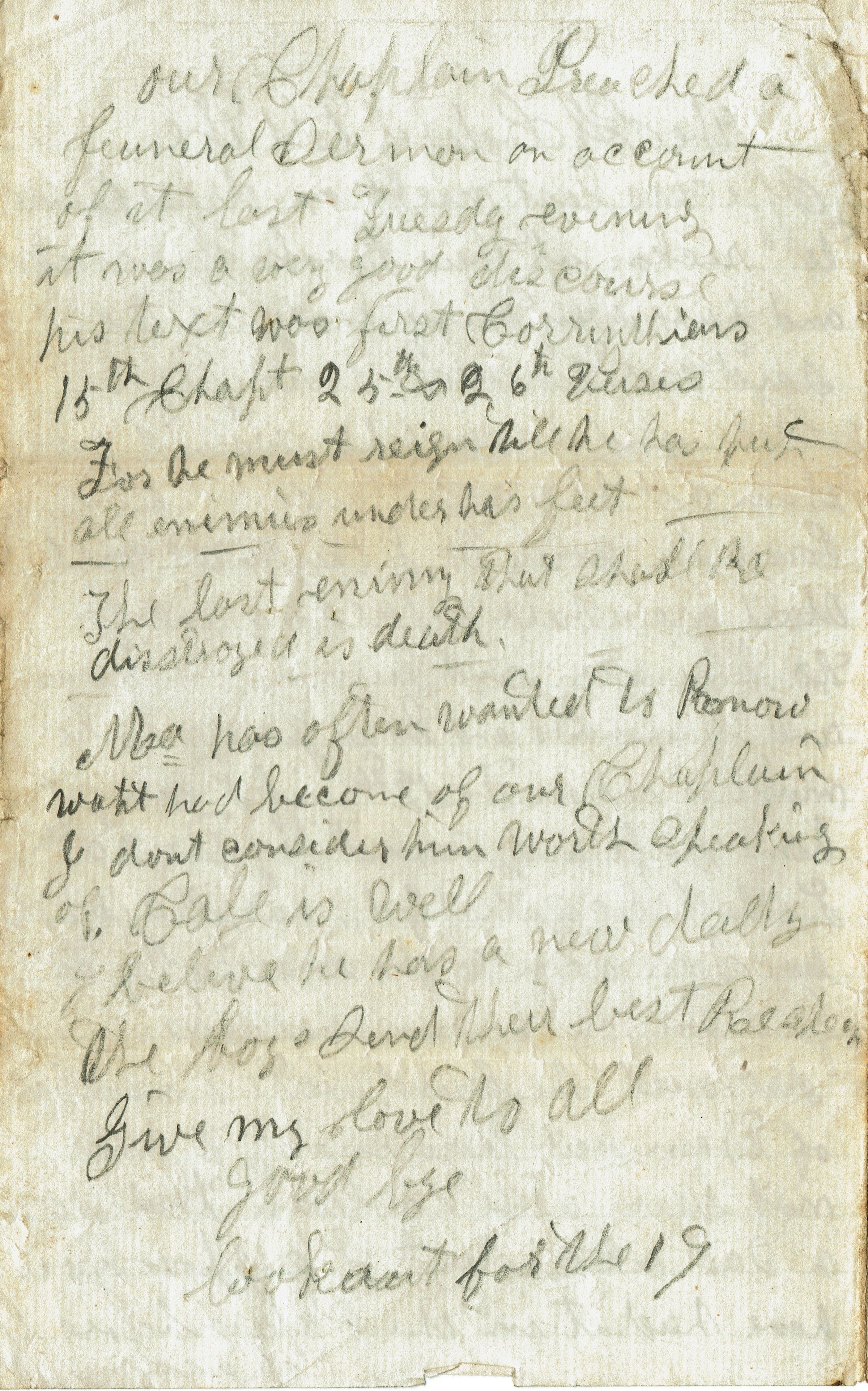 Letter from Samuel B. Parsil to his father dated May 17,1863 from the 27th NJ Infantry camp near Somerset, Kentucky. Letter refers to the drowning of members of the Regiment while crossing the Cumberland River in Kentucky on May 6.Acquisition