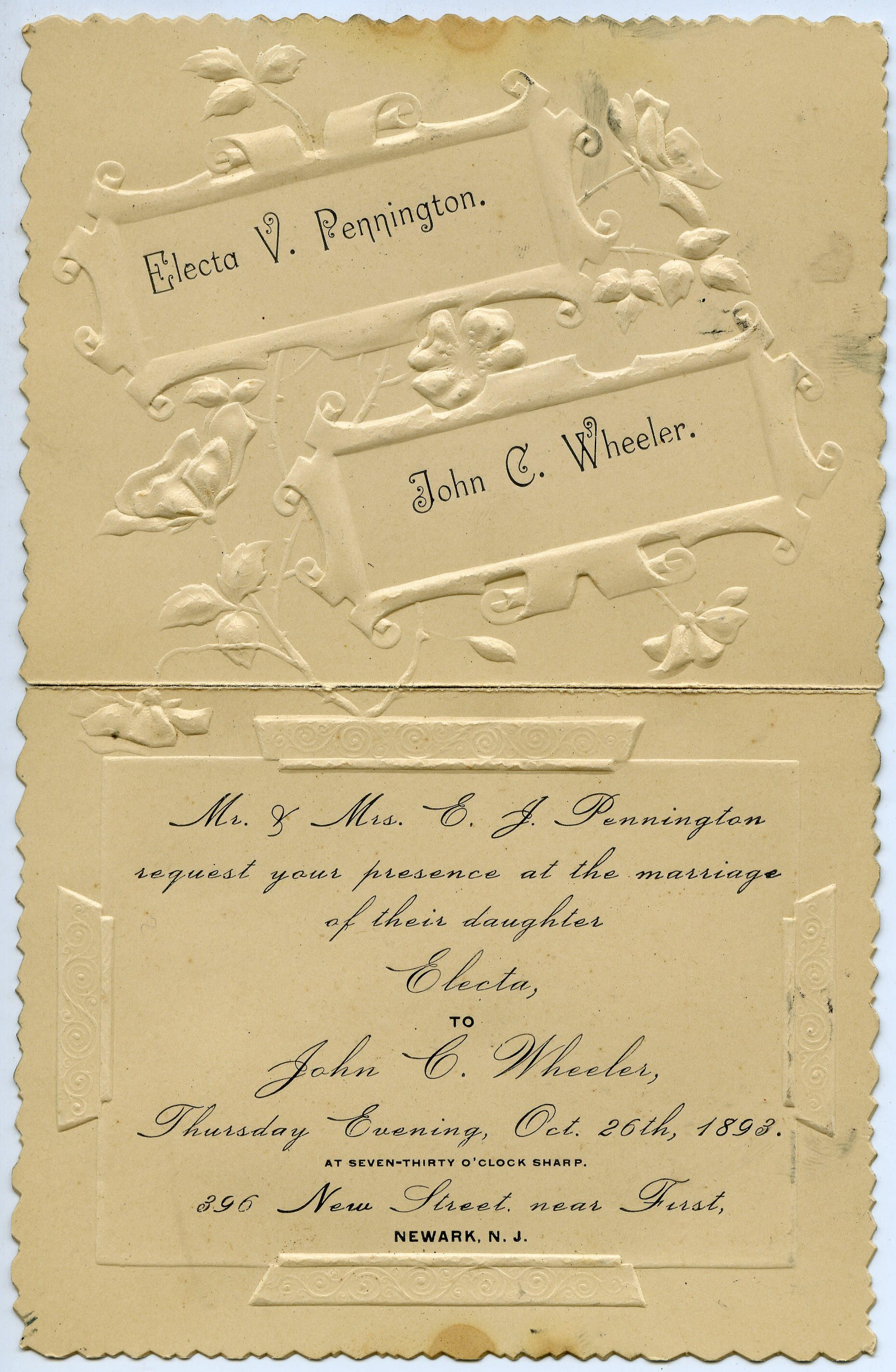 Pennington & Wheeler Wedding Invitation, 1893