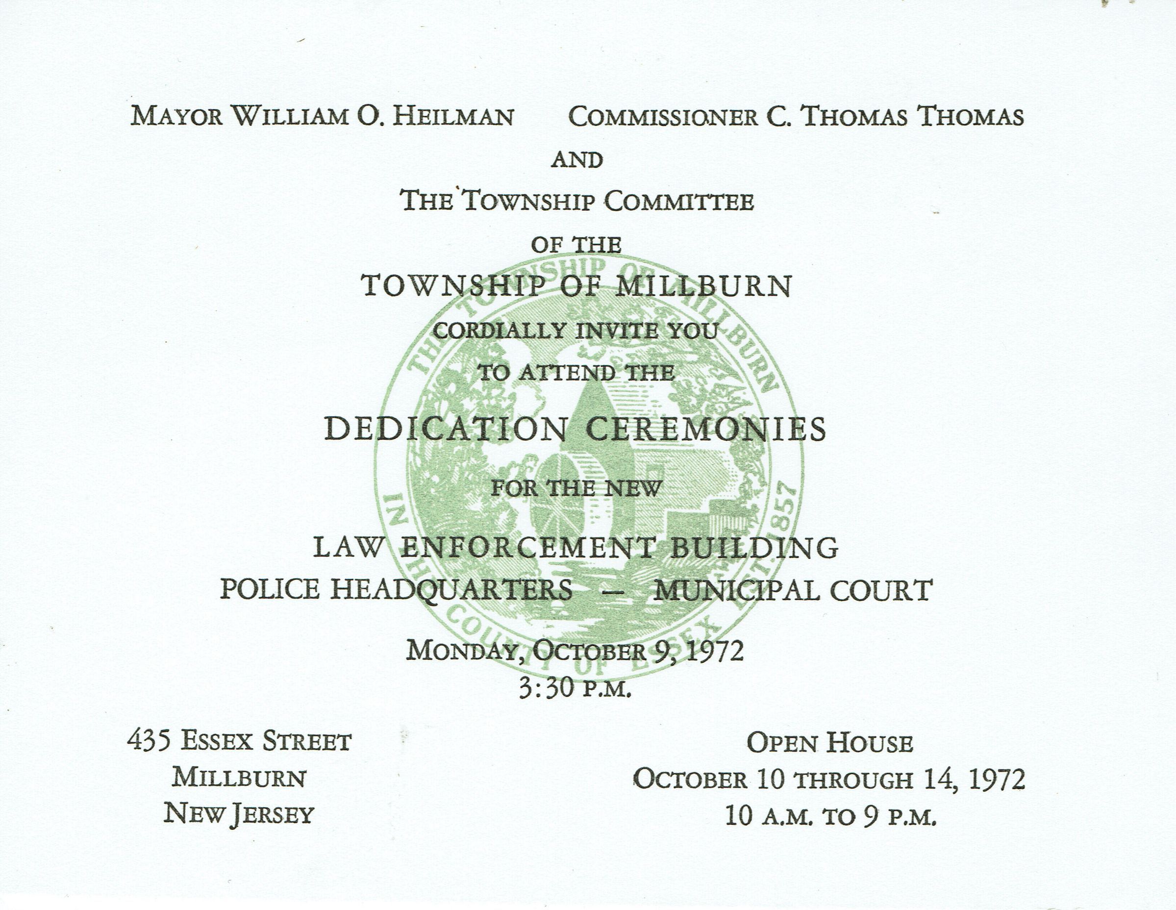 Police Headquarters New Building Dedication Invitation, 1972