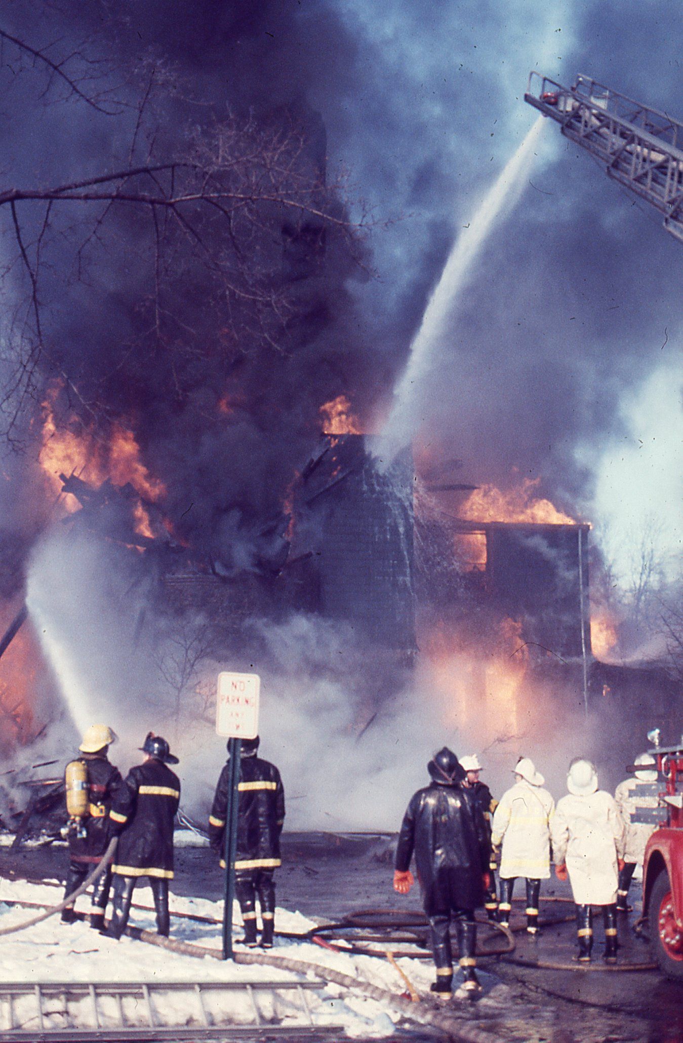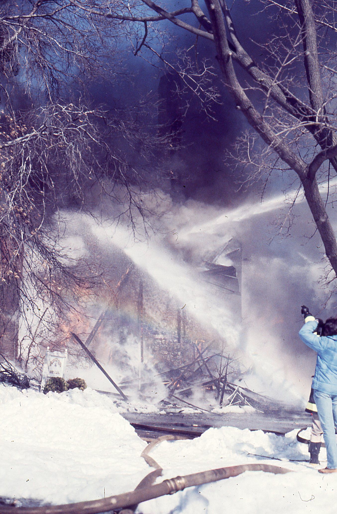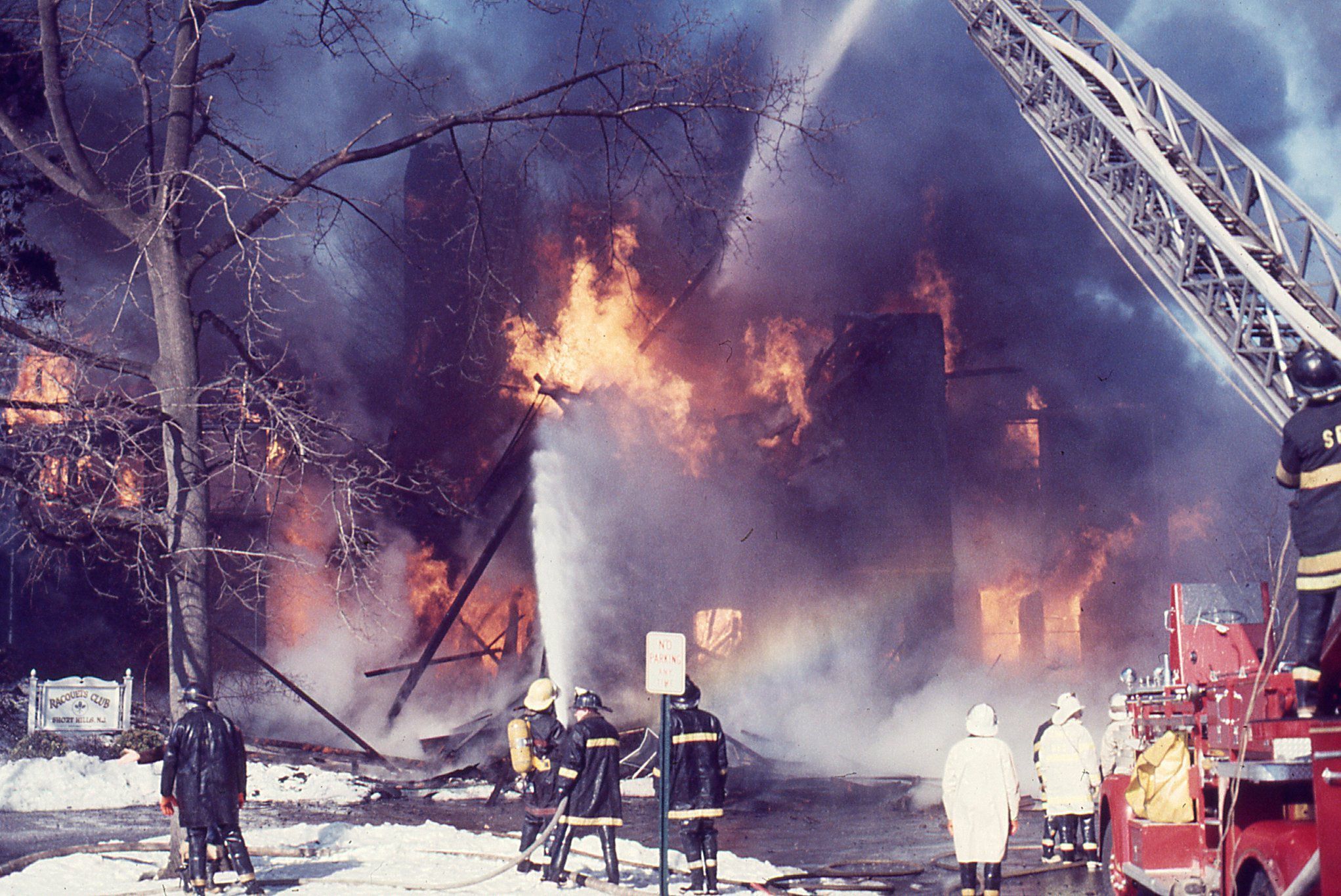 Color photographs (27) of the fire that destroyed the Racquet's Club, Short Hills on February 4, 1978 taken by Owen Lampe.Photograph Details
