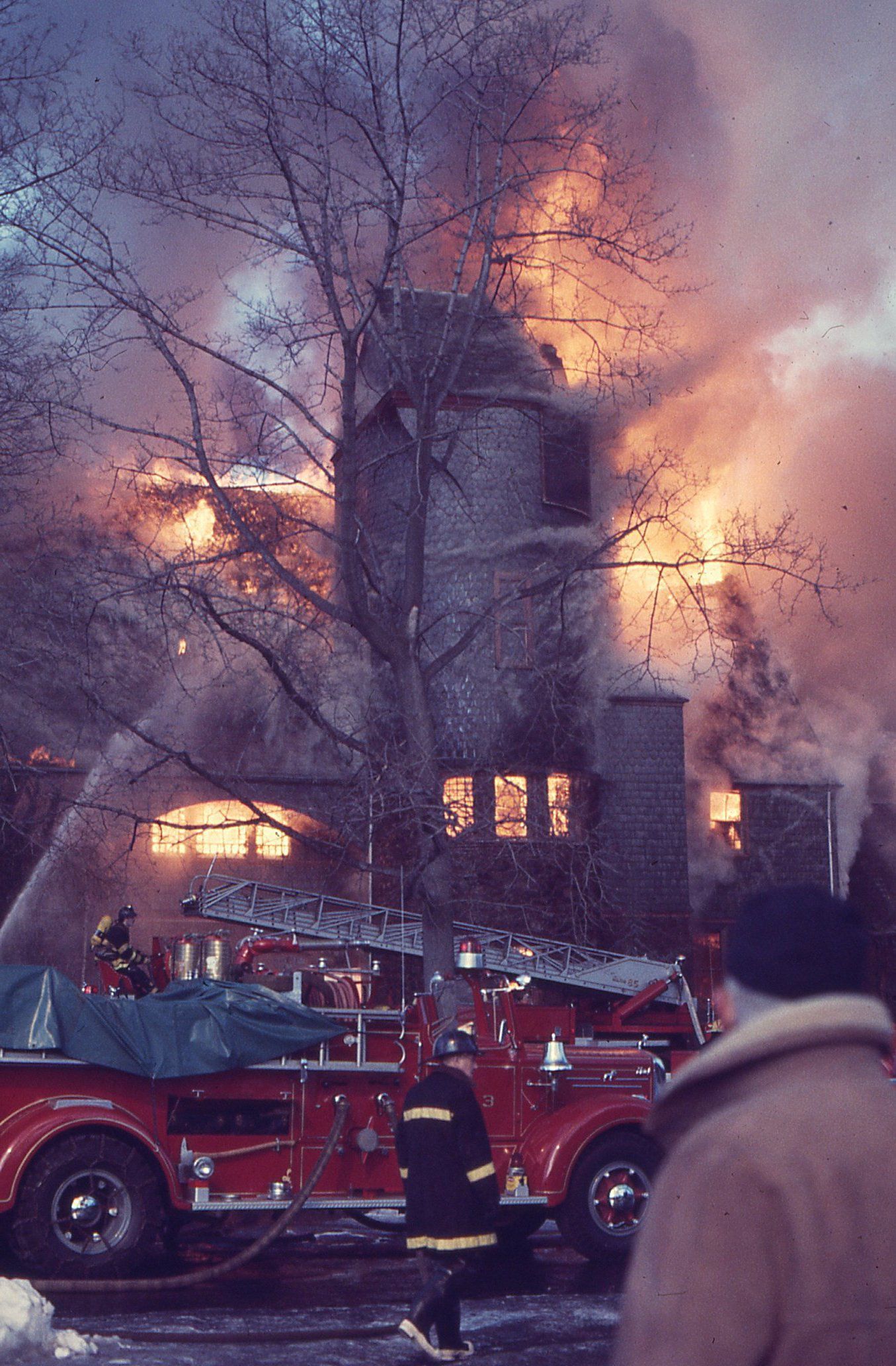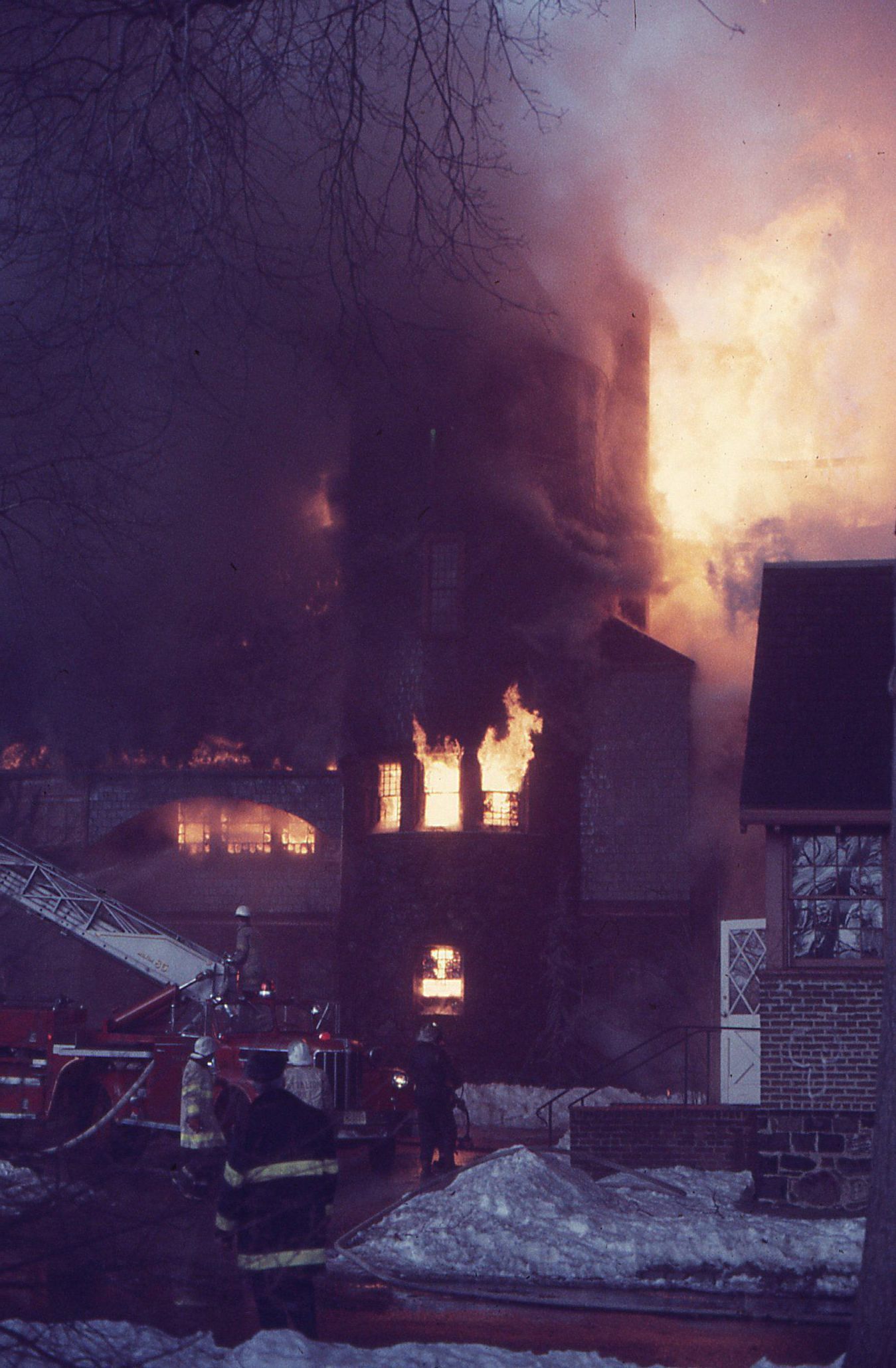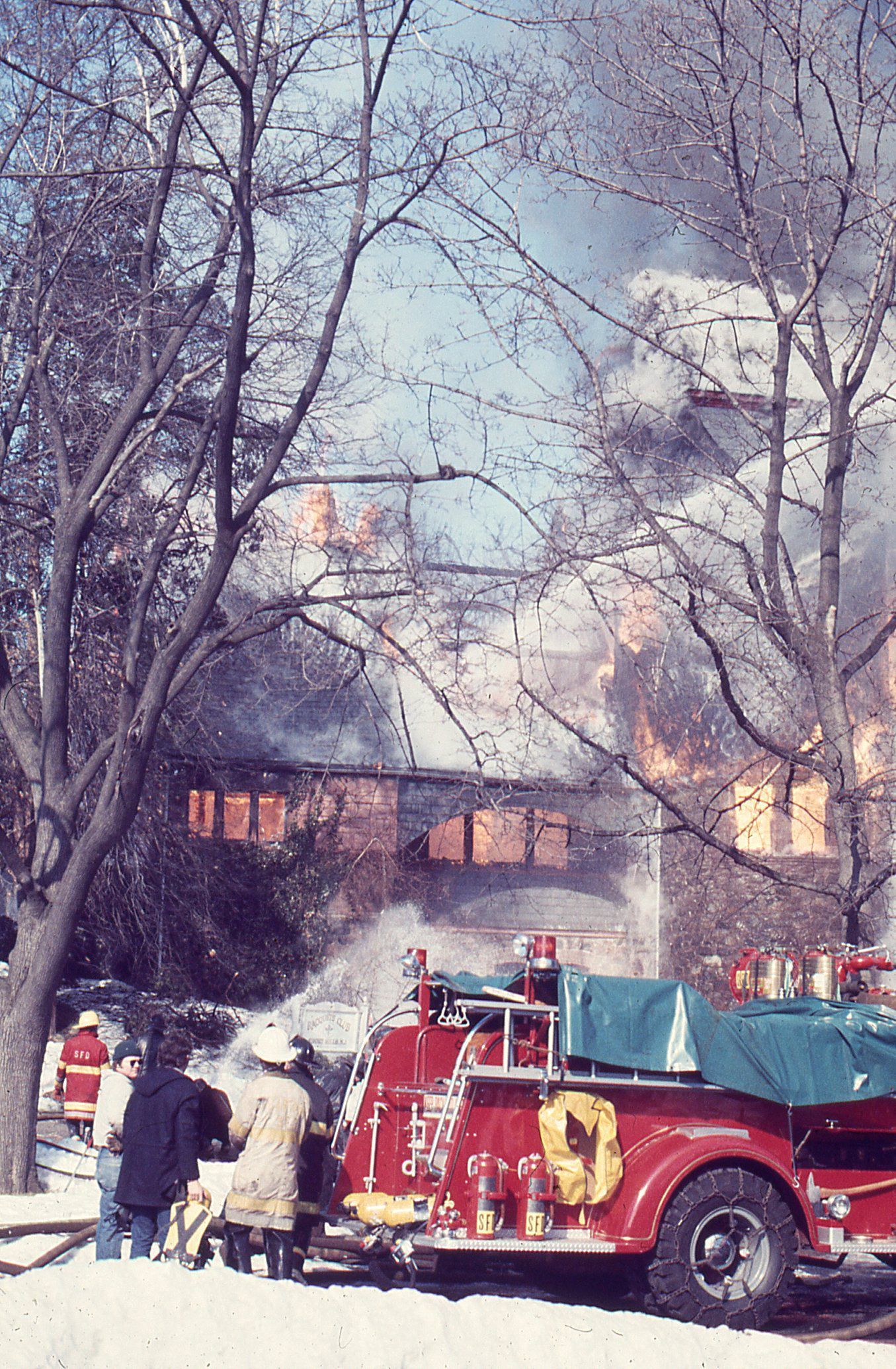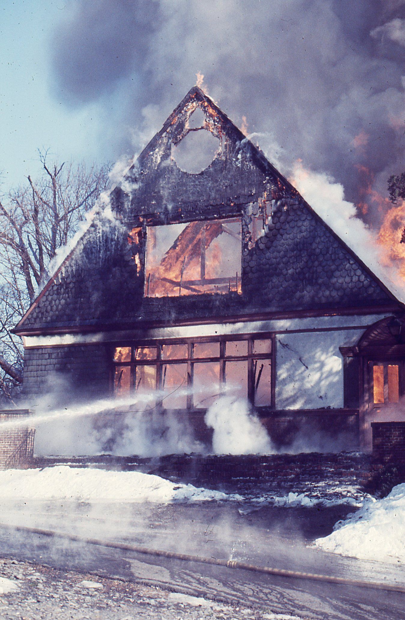Color photographs (27) of the fire that destroyed the Racquet's Club, Short Hills on February 4, 1978 taken by Owen Lampe.Photograph Details
