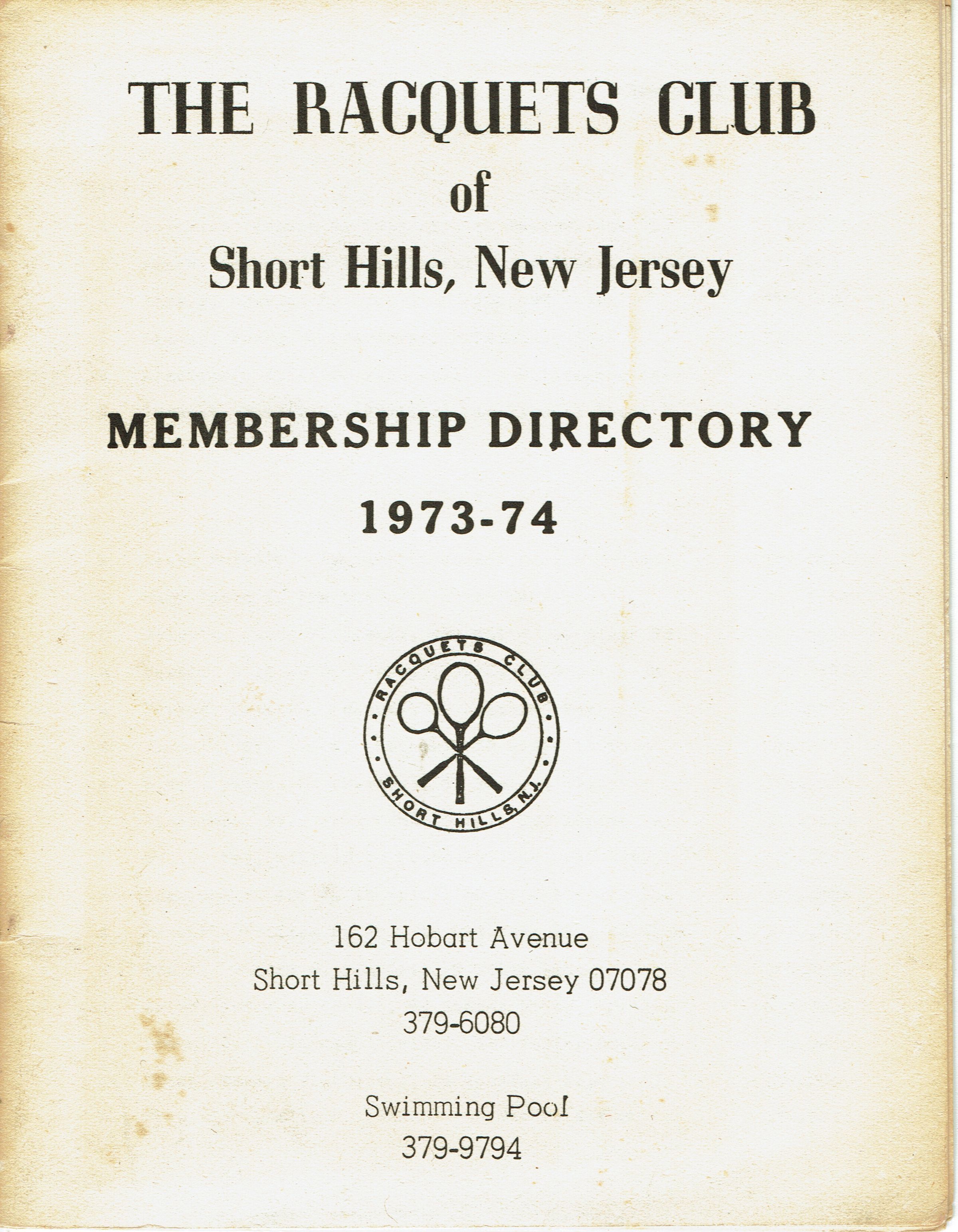 16 page typed catalog for The Racquet's Club of Short Hills, 162 Hobart Avenue containing member names, addresses and phone numbers.Acquisition