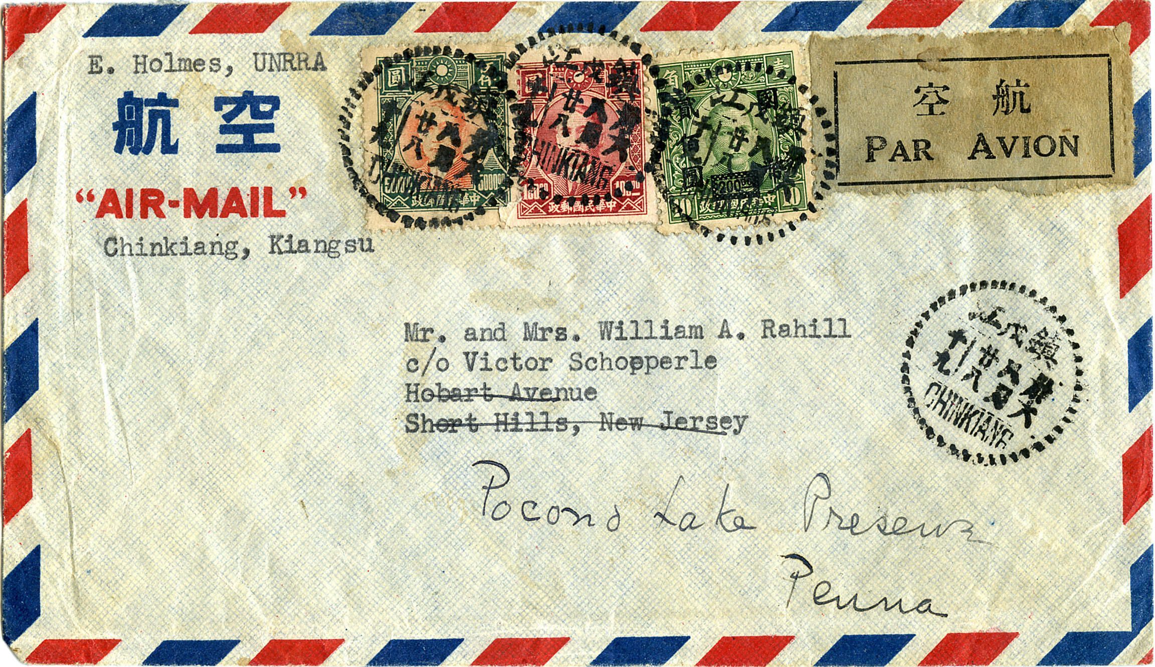 Rahill: William A. Rahill Airmail Envelope, 1947