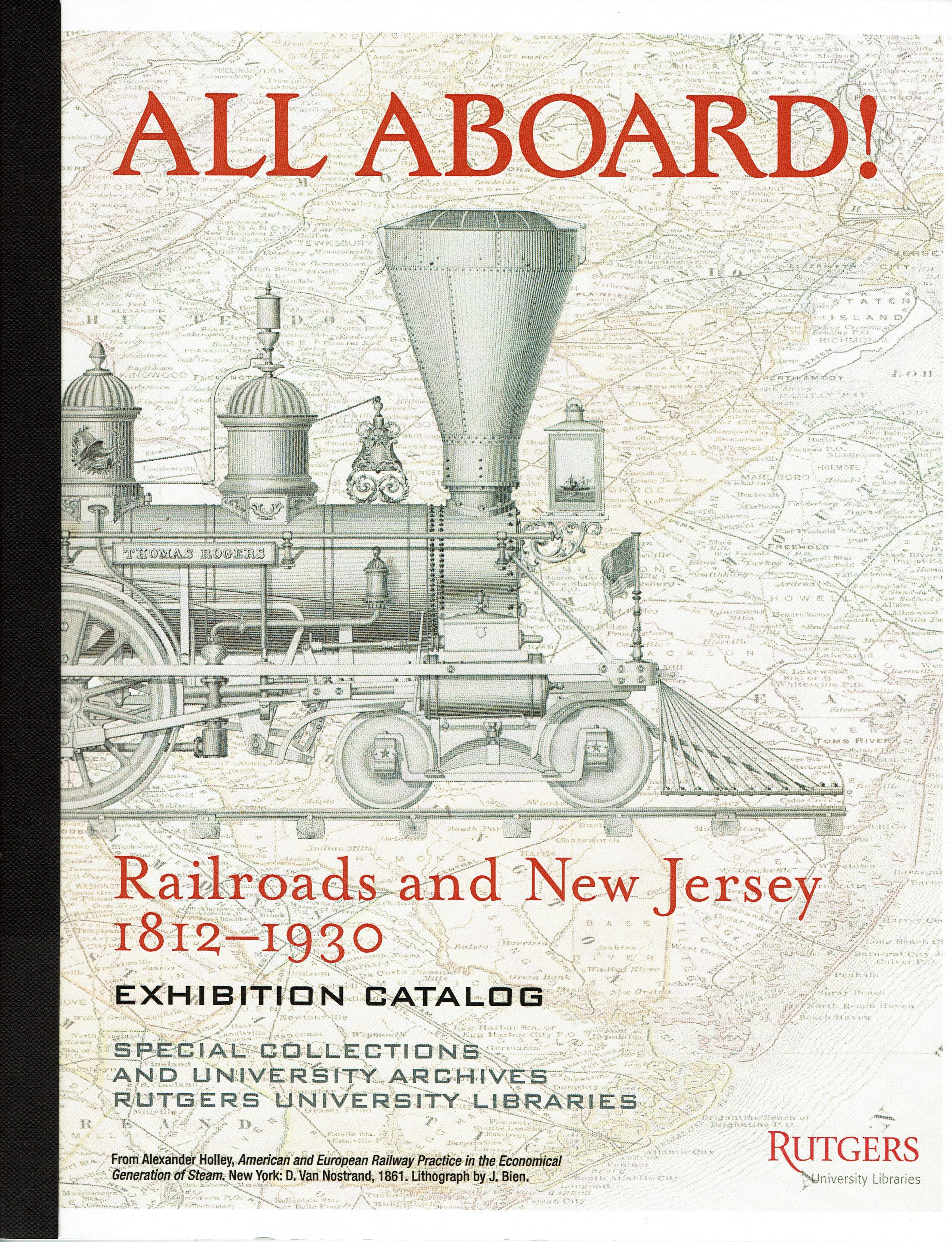 All Aboard! Railroads and New Jersey, 1812-1930. Exhibition catalog: Special Collections and University Archives, Rutgers University Libraries. Softcover, 39 pp. illustrated with B&W and color photos.Acquisition