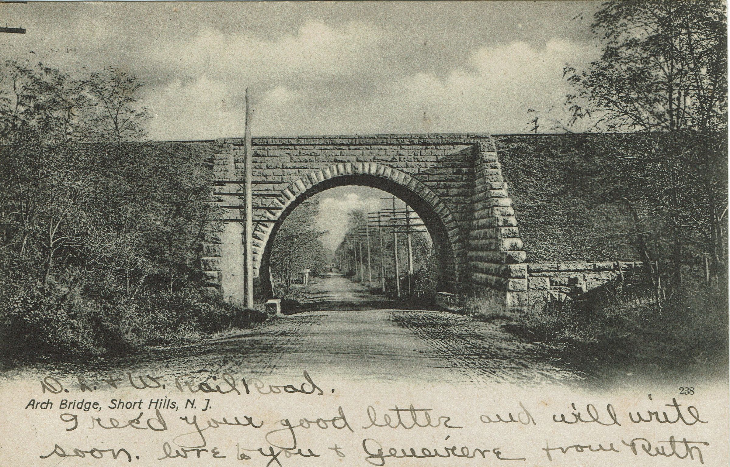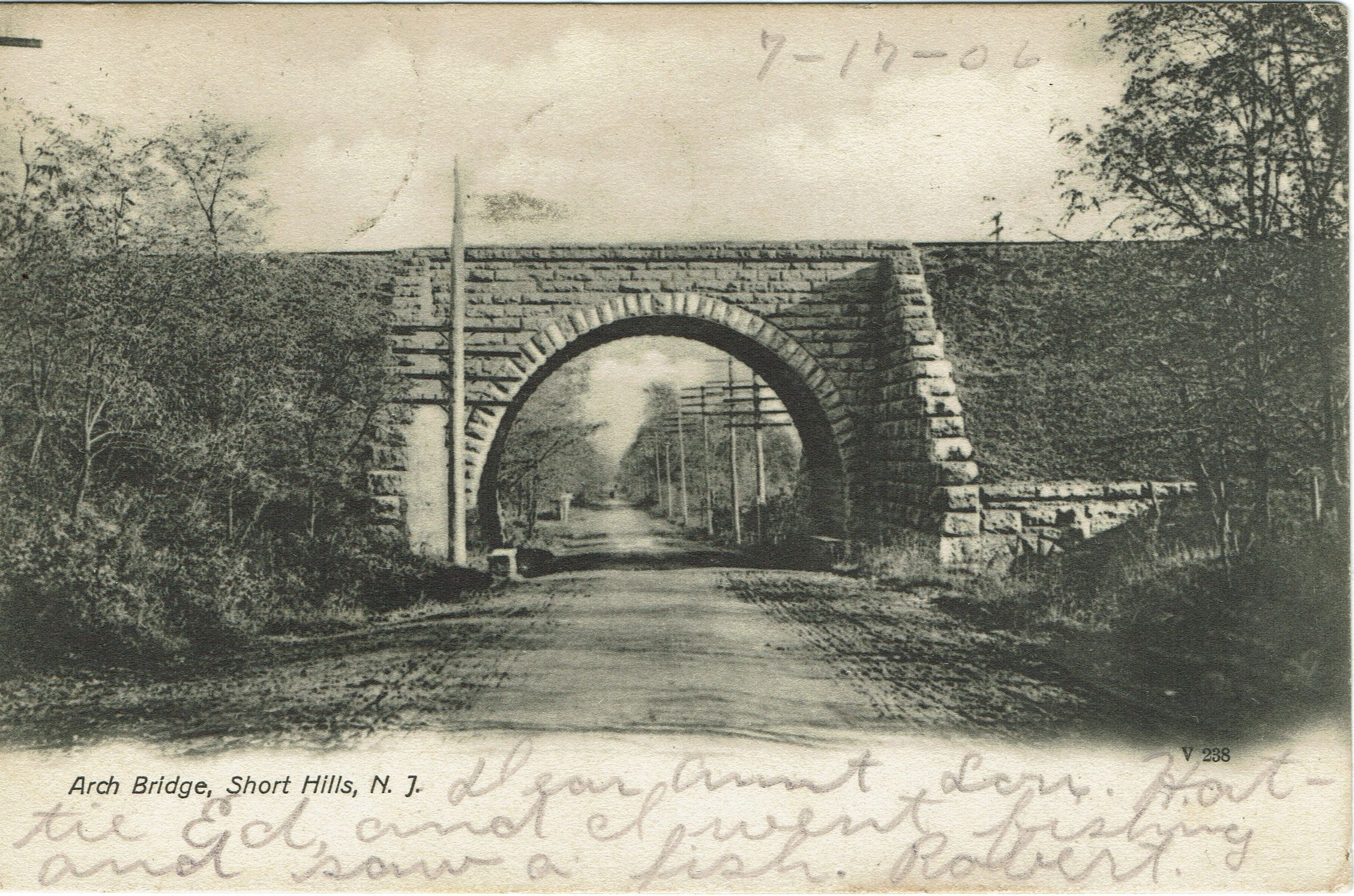 Two postally used, B&W photographic postcards of the Arch Bridge on Morris Turnpike in Short Hills. Postmarked Chatham, July 17, 1906 and Short Hills, July 4, 1907.Collection