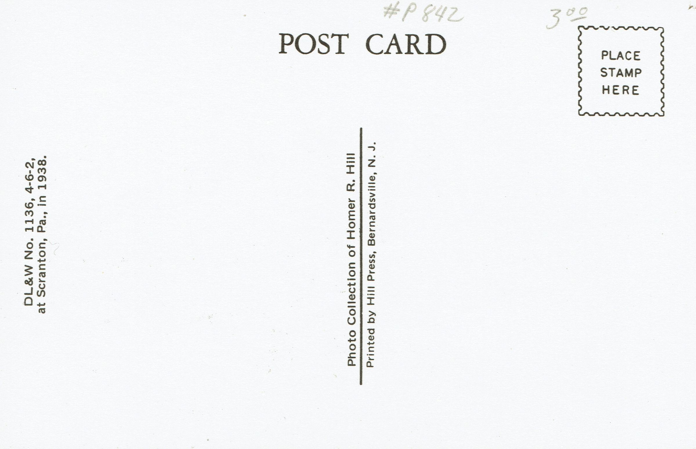 Photographic postcard of Delaware, Lackawanna and Western Engine number 1136, 4-6-2 at Scranton, Pennsylvania in 1938. Postally unused.Collection