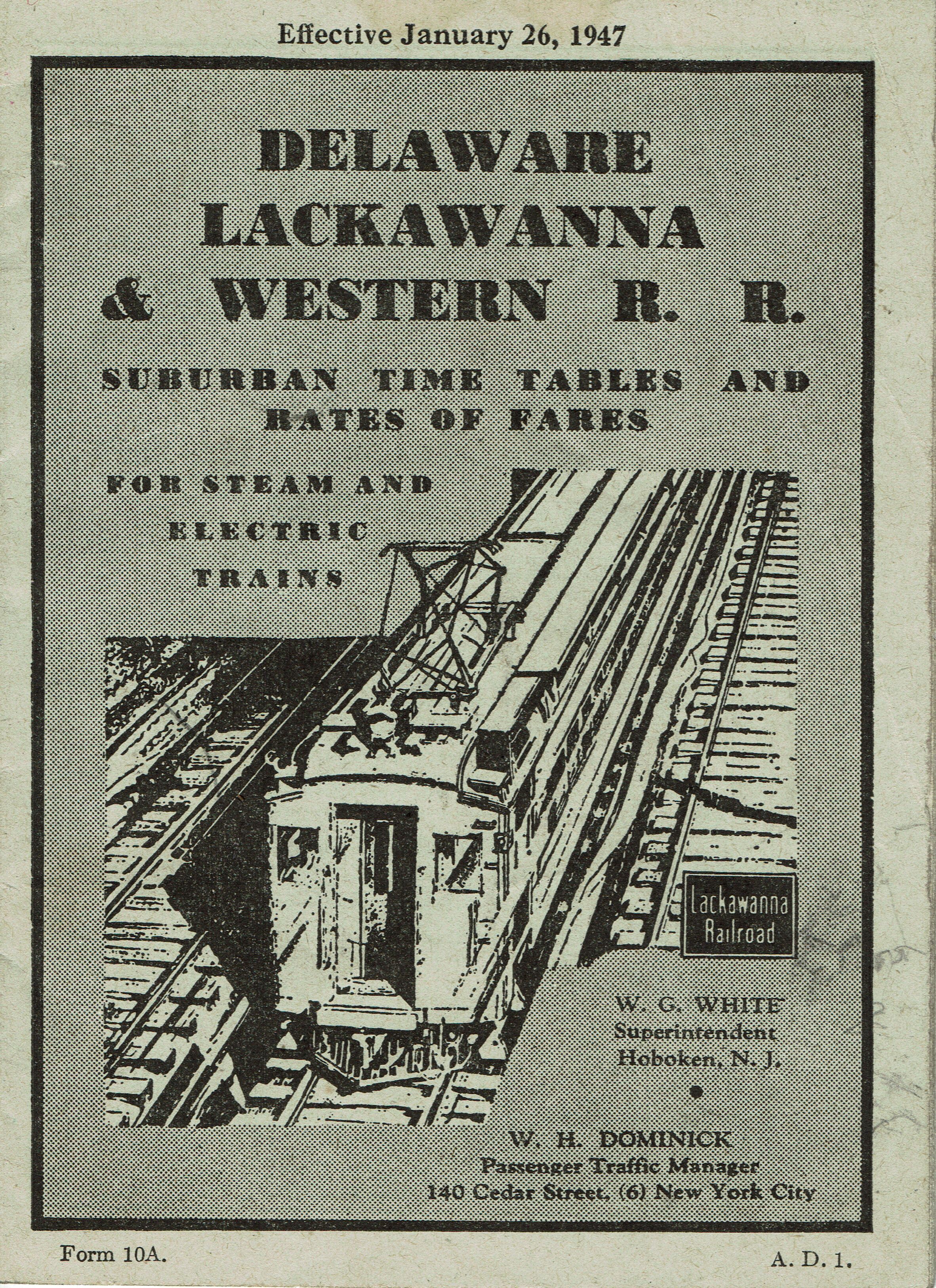 Delaware, Lackawanna & Western Railroad Suburban Time Tables and Rates of Fares Effective January 26, 1947. 31 pp. Route Map on back page.Acquisition