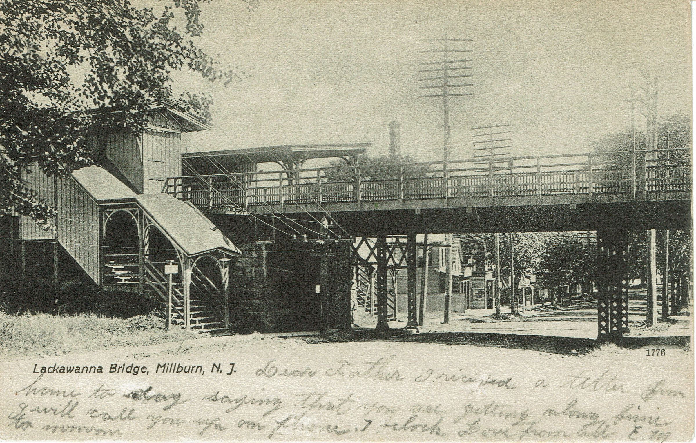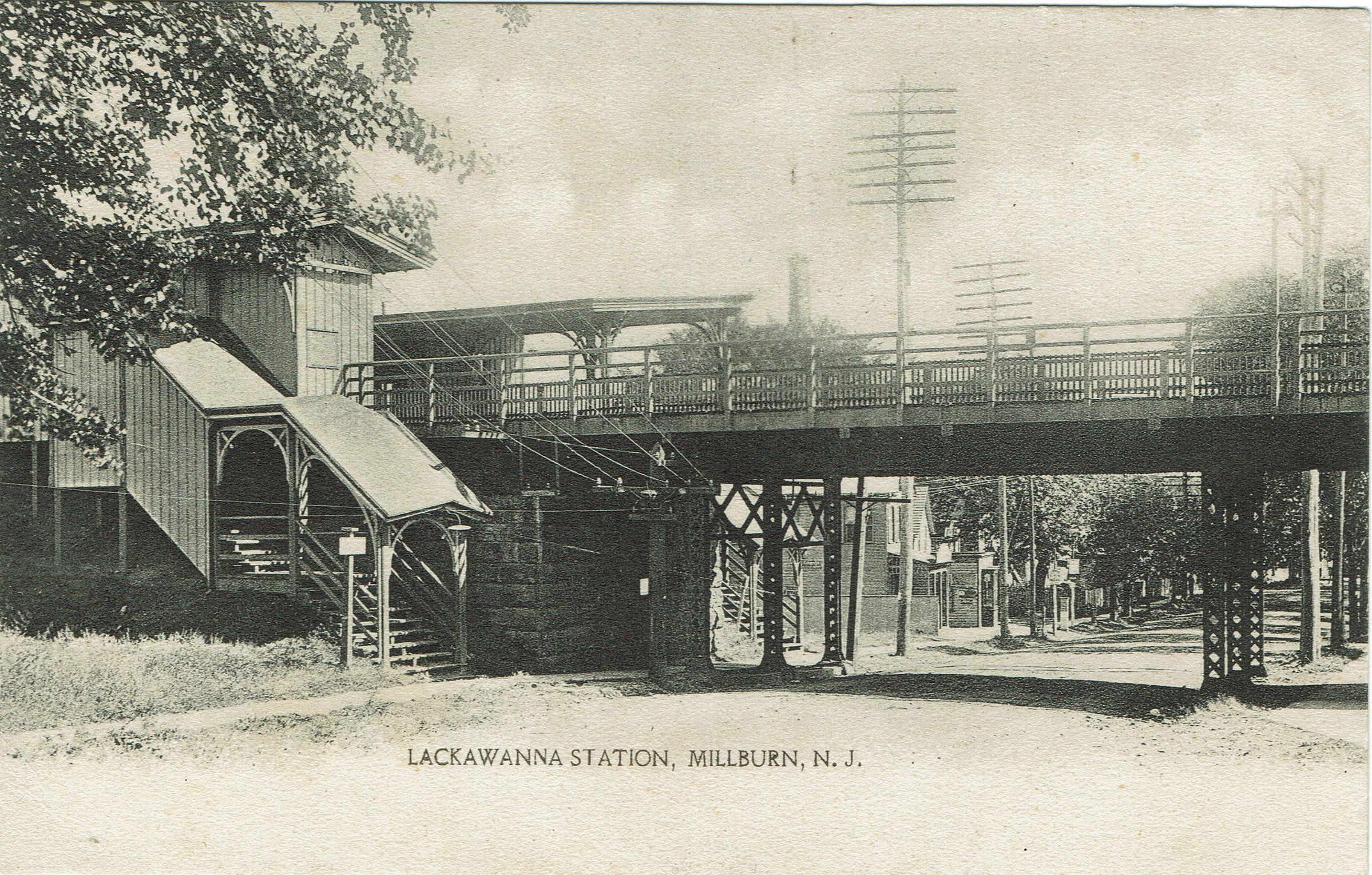Two B&W photographic postcards of the "Lackawanna Bridge" also called Lackawanna Station on Main Street. One is postally-used, postmarked Millburn, July 13, 1909. The second is postally-unused.Collection