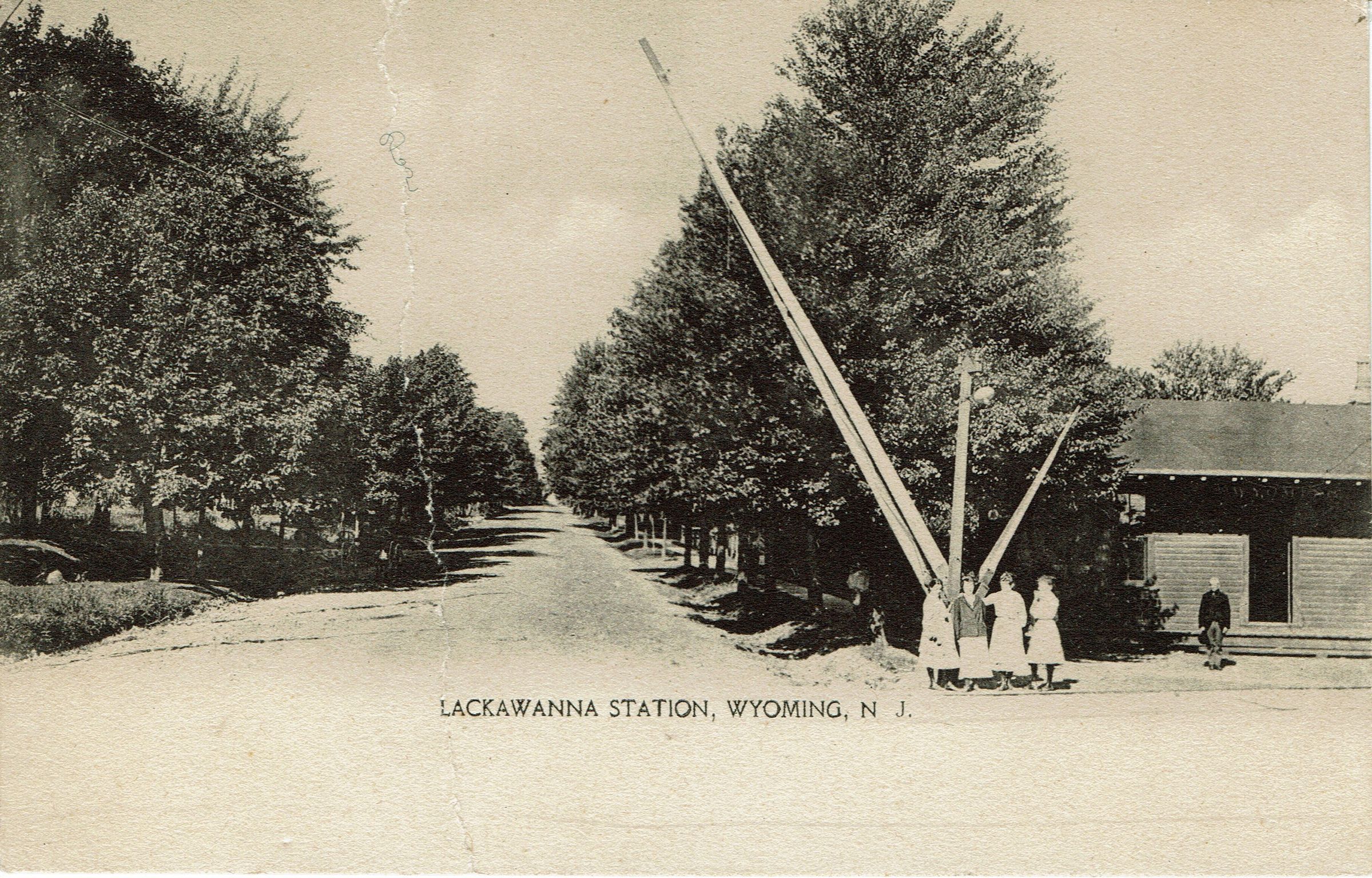 Postally unused photographic postcard of the Lackawanna Railroad Station in Wyoming, NJ. The station was abandoned in 1907 when the new Millburn train station was constructed off of Old Short Hills Road. Commuters from the Wyoming section of town had to walk the half mile further to catch the train.Collection