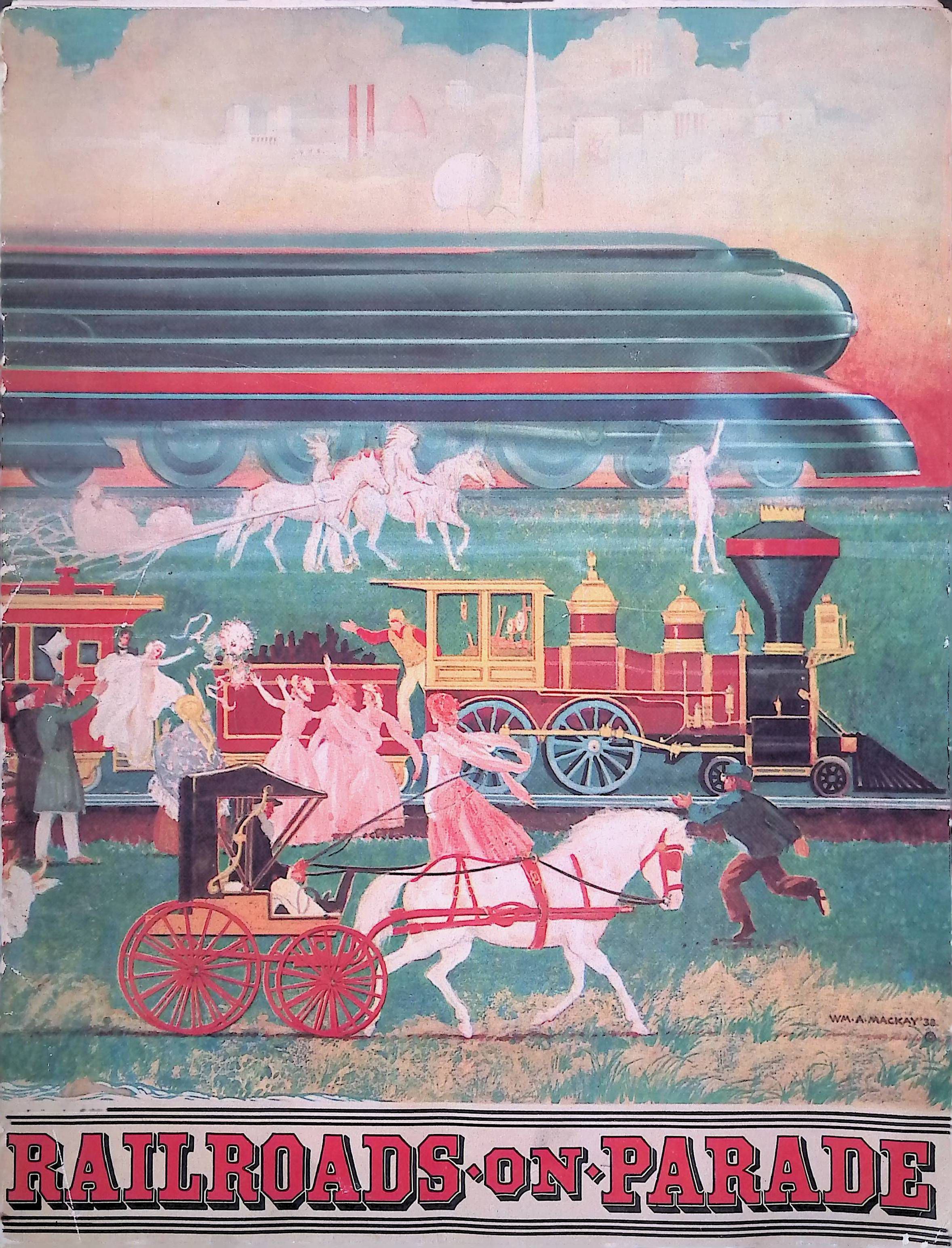 Book of the Pagent: Railroads on Parade Presented at the New York World's Fair 1939. Railroads on Parade Program from the 1939 World's Fair to dofull tribute to The American Railroad. 19 pp. (unpaginated). Illustrated with B&W photographs and drawings. Program for performance of Railroads on Parade. Words by Edward Hungerford, Music by Kurt Weill, Staged by Charles Alan. Includes images of Lackawanna trains.Acquisition