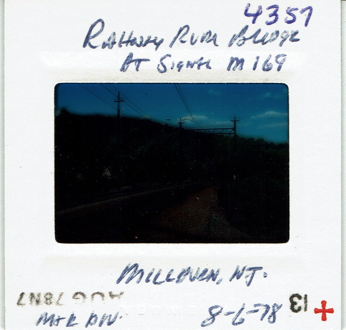 Color slide of the Railroad Tracks on the Rahway River Bridge at Signal M169 taken August 6, 1978. No print.Photograph Details