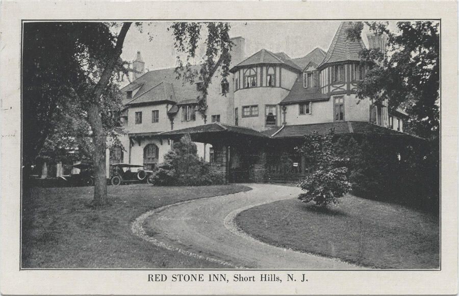 1923 divided-back, b/w, real-photo of "RED STONE INN, Short Hills, N.J.", which was the former home of William Ingraham Russell. Russell wrote Romance and Tragedy of a Widely Known Businessman of New York, which maligned his former neighbors in the Knollwood section of Short Hills.Collection