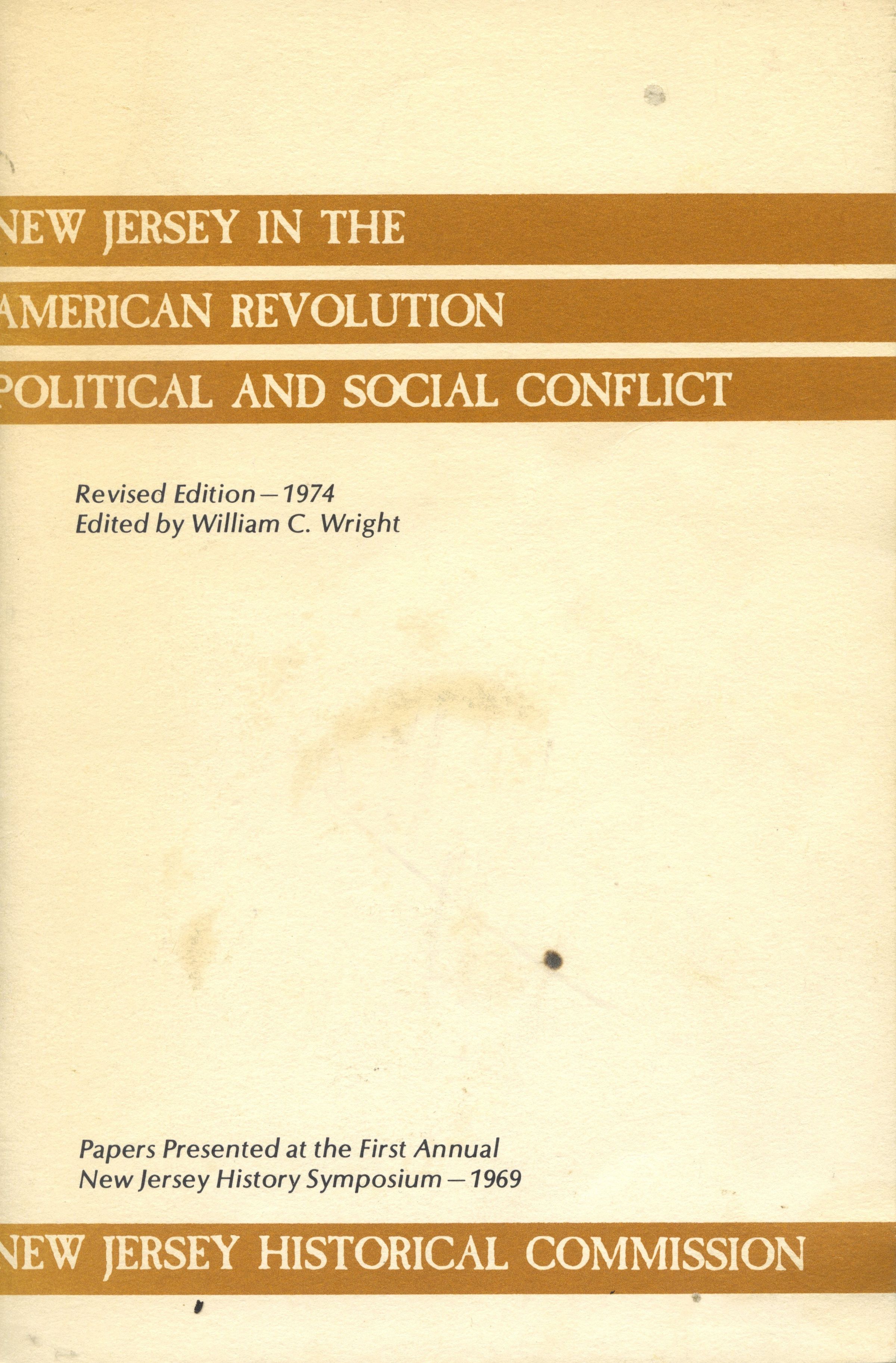 Wright, William C., ed., New Jersey in the American Revolution: Political and Social Conflict. New Jersey Historical Commission: Papers Presented at the First Annual New Jersey History Symposium, 1969. Revised Edition, 1974. Softcover, 88 pp. Contributions by William C. Wright, Larry R. Gerlach, Adrian C. Leiby, Kenneth W. Richards, Frances D. Pingeon, Arthur Zilversmit, Whitfield J. Bell, Jr.Acquisition