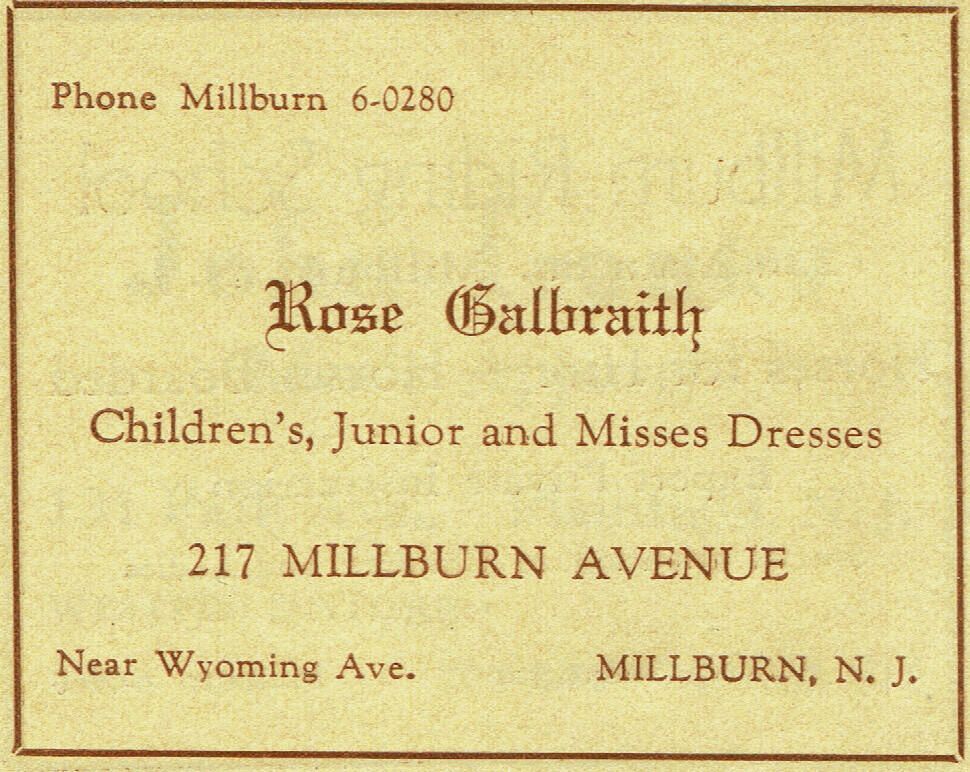Advertisement for Rose Galbraith Clothing Store: Children's, Junior and Misses Dresses, 217 Millburn Avenue, from Paper Mill Playhouse New Jersey Theatre Festival Program, 1939.Acquisition
