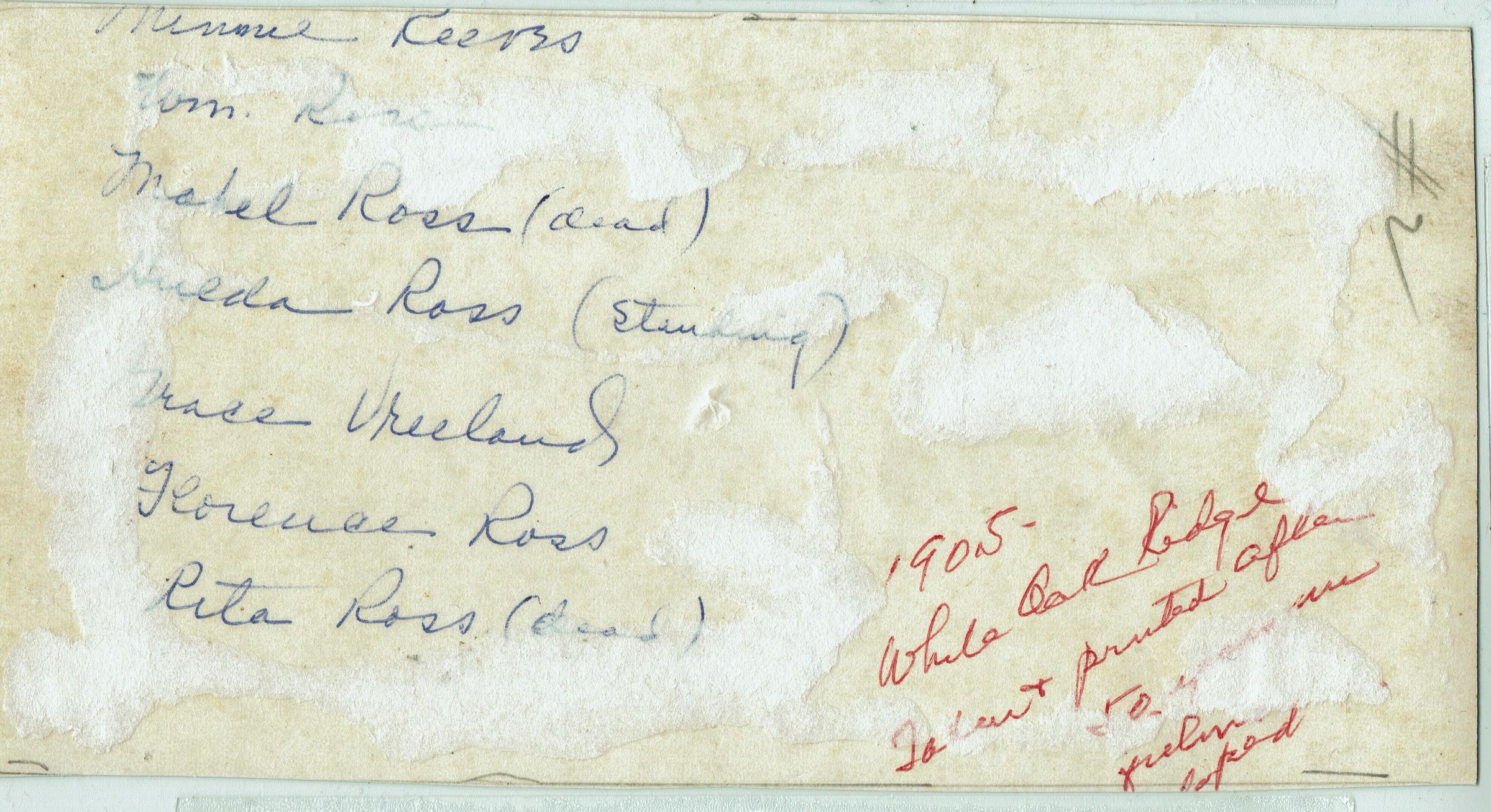 Photograph of Minnie Reeves, William Ross, Mabel Ross, Hulda Ross (Standing), Grace Vreeland, Florence Ross and Rita Ross at White Oak Ridge Road in 1905.Acquisition