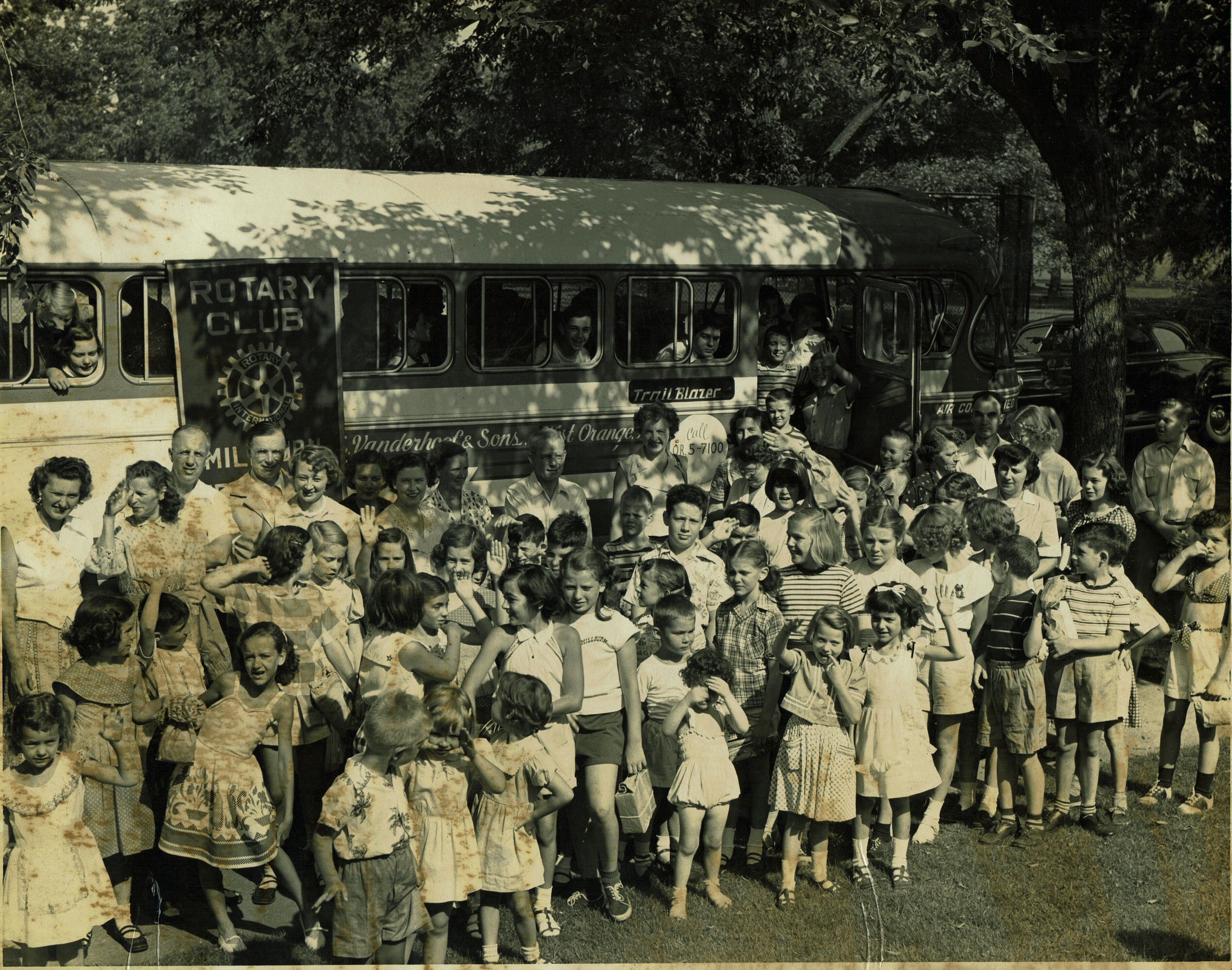 Photograph of Millburn Rotary Club Trip to Bronx Zoo with 85 local children on July 25, 1851. Photo and caption were featured on the front page of the August 2, 1951 edition of The Item. Chaperones for the trip included Rotary Club President Hubert Nelson, Peter Farley and George Bauer. The Recreation Department was represented by Mrs. Thomas Tighe. Kiwianian Eric Lob also attended as special envoy.Acquisition