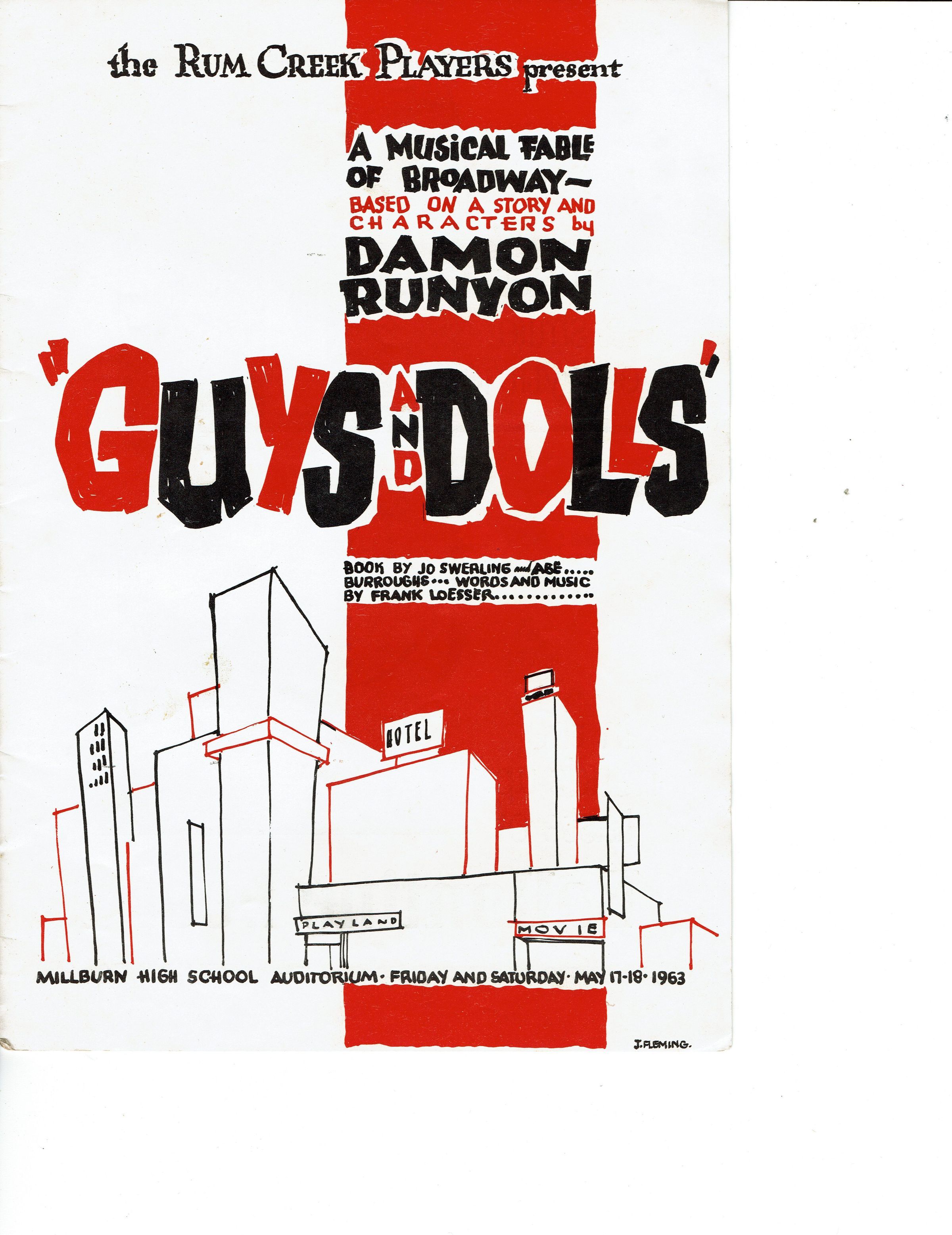 Program for the Rum Creek Players Production of "Guys and Dolls," at the Millburn High School Auditorium, May 17-8, 1963.