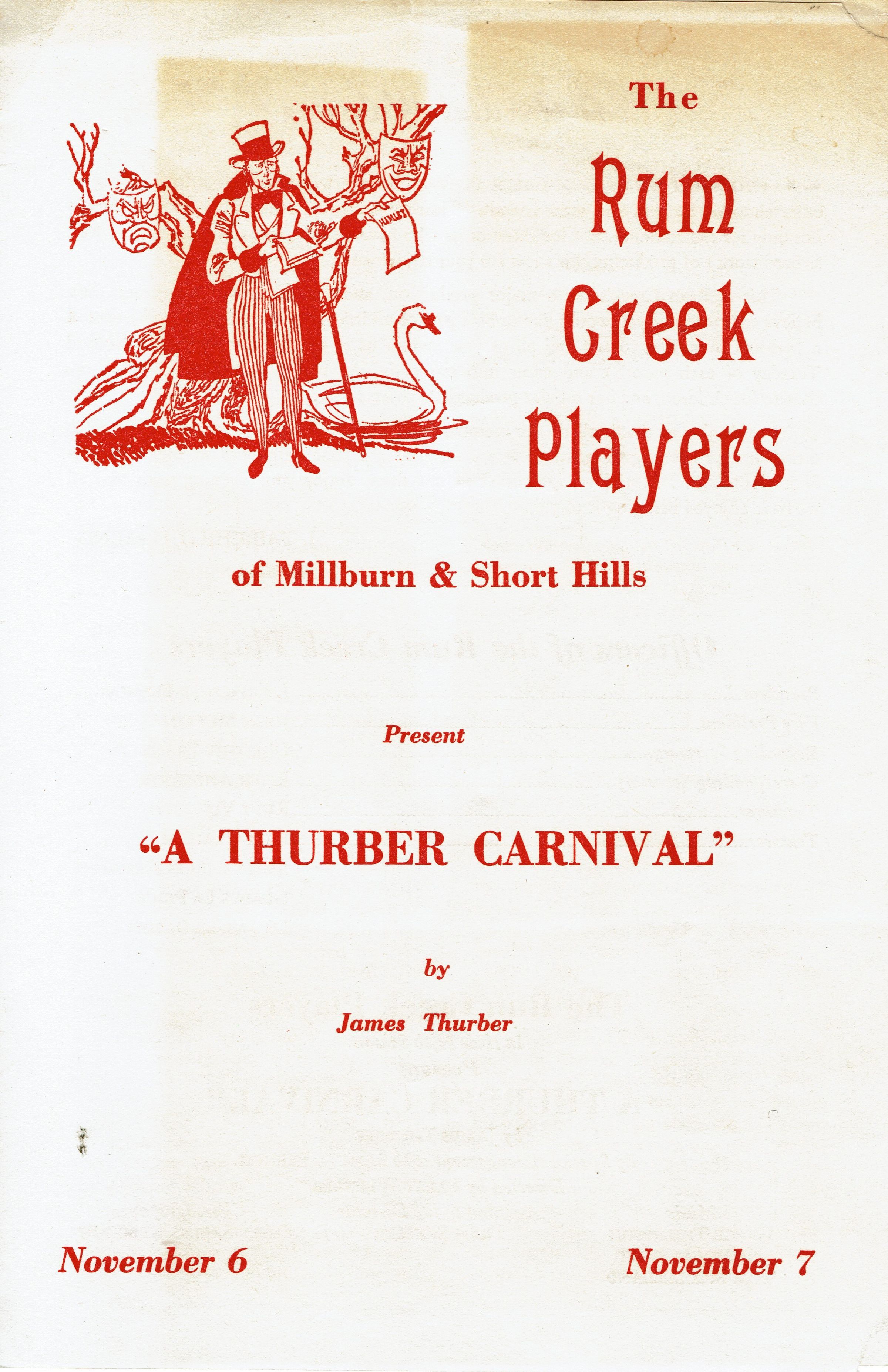 The Rum Creek Players was a community theater starting in fall 1960 and sponsored by the Millburn Township Recreation Commission.Acquisition