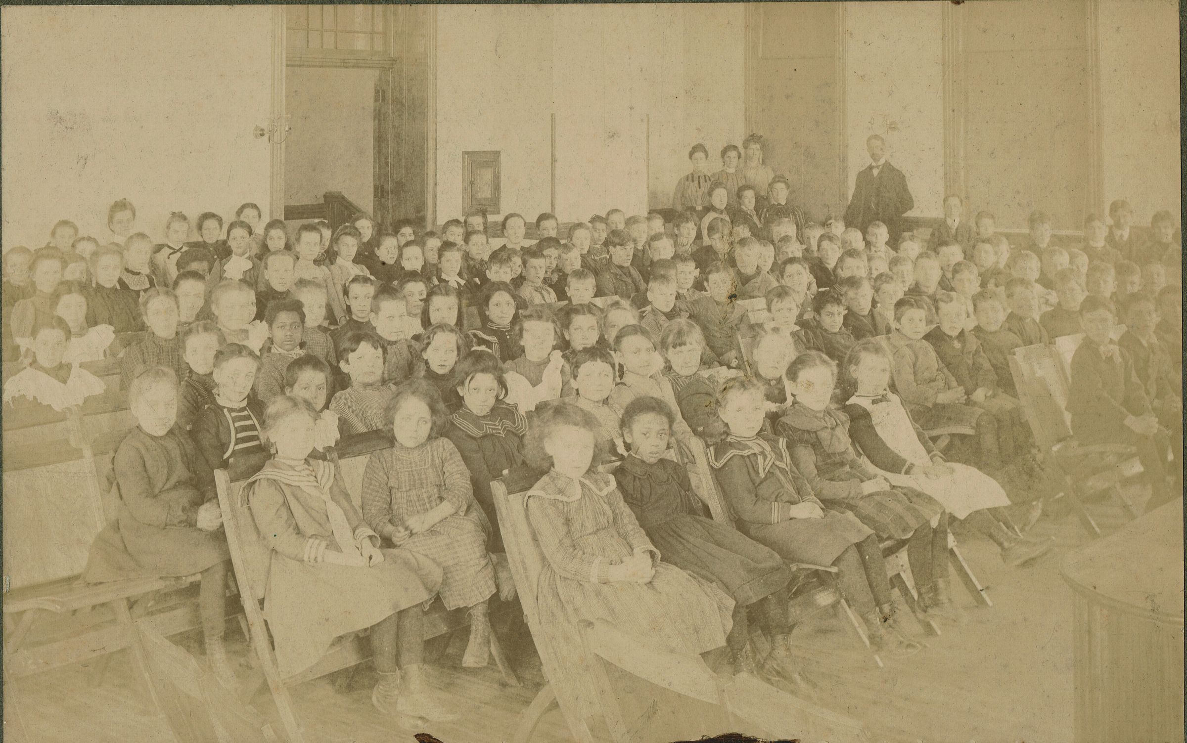 Unidentified photograph of school children seated. Photograph was taken by W.J. Bourie, Roseville, NJ and was part of the collection of photographs donated by the Marshall family.Acquisition