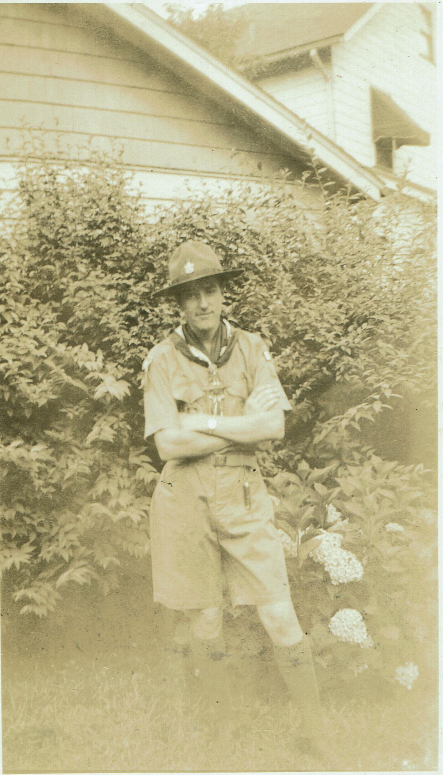 Scouts: Millburn Boy Scout Standing in Front of House, c. 1922