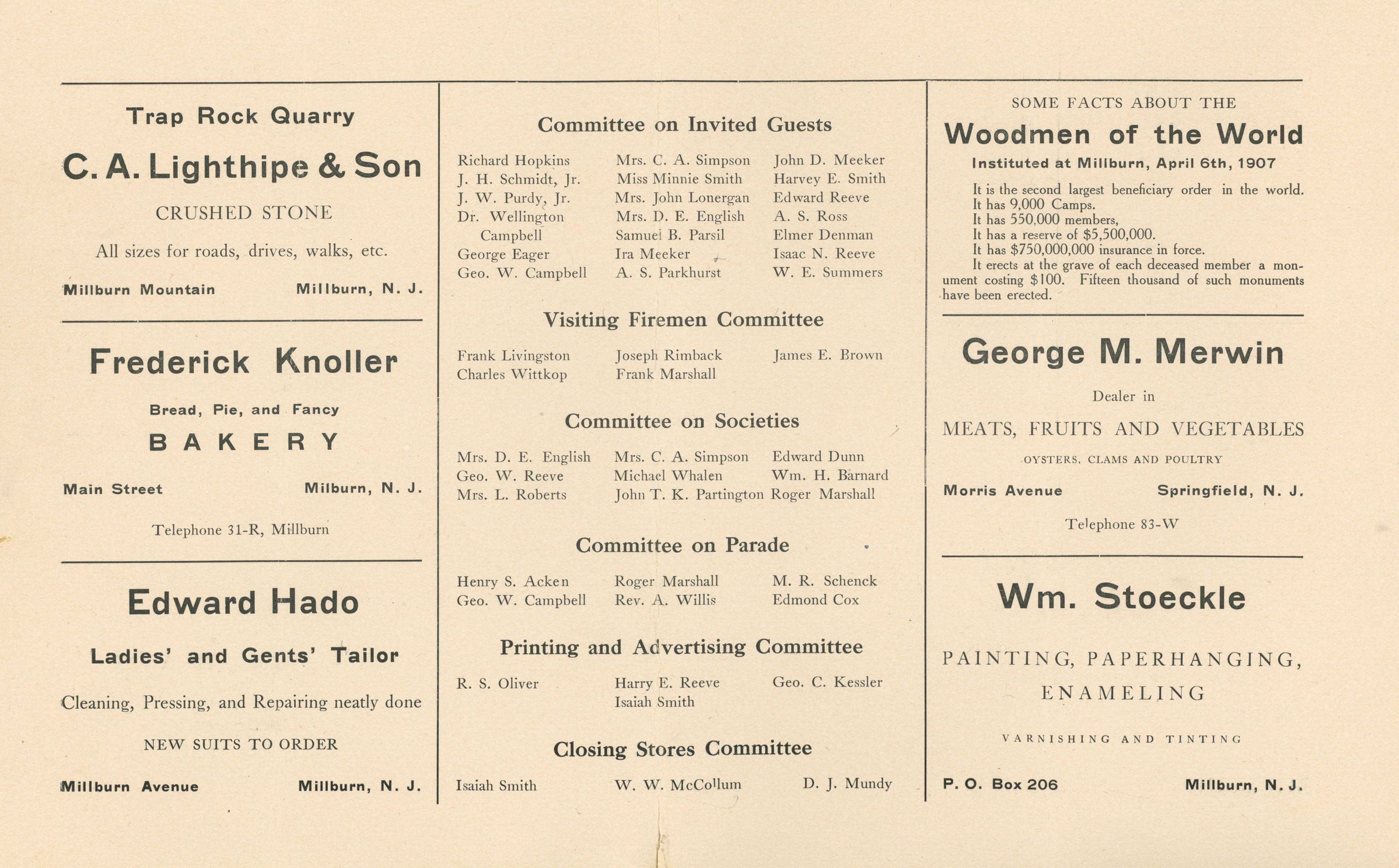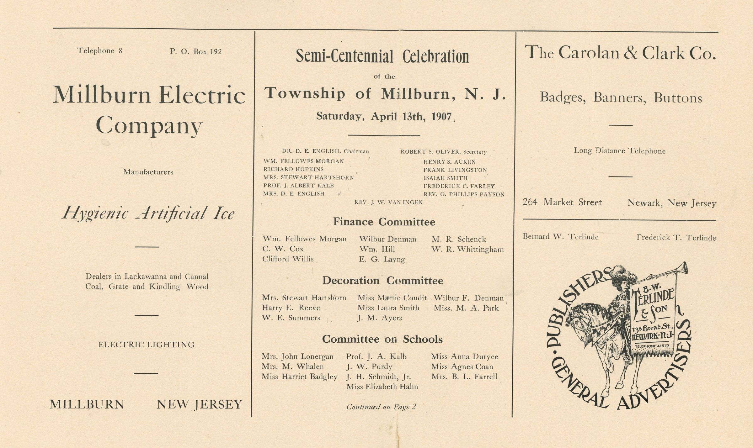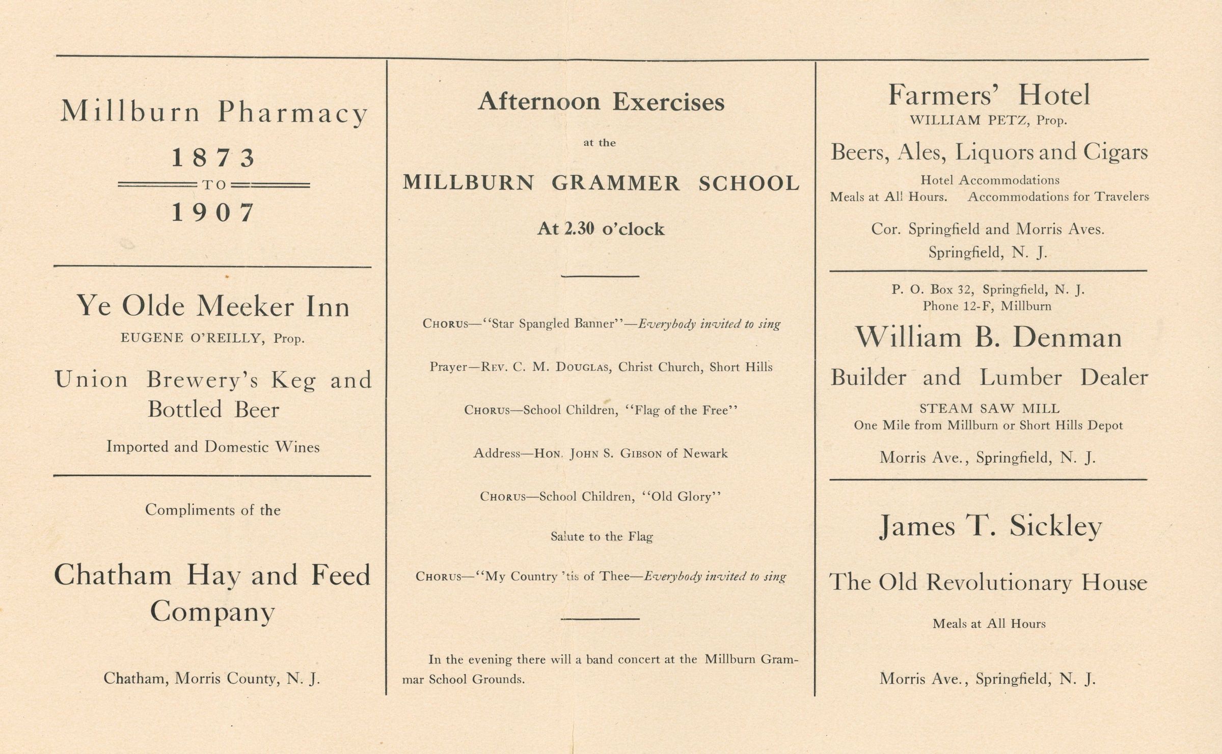 Semi-Centennial Celebration: Millburn Semi-Centennial Celebration Program, 1907