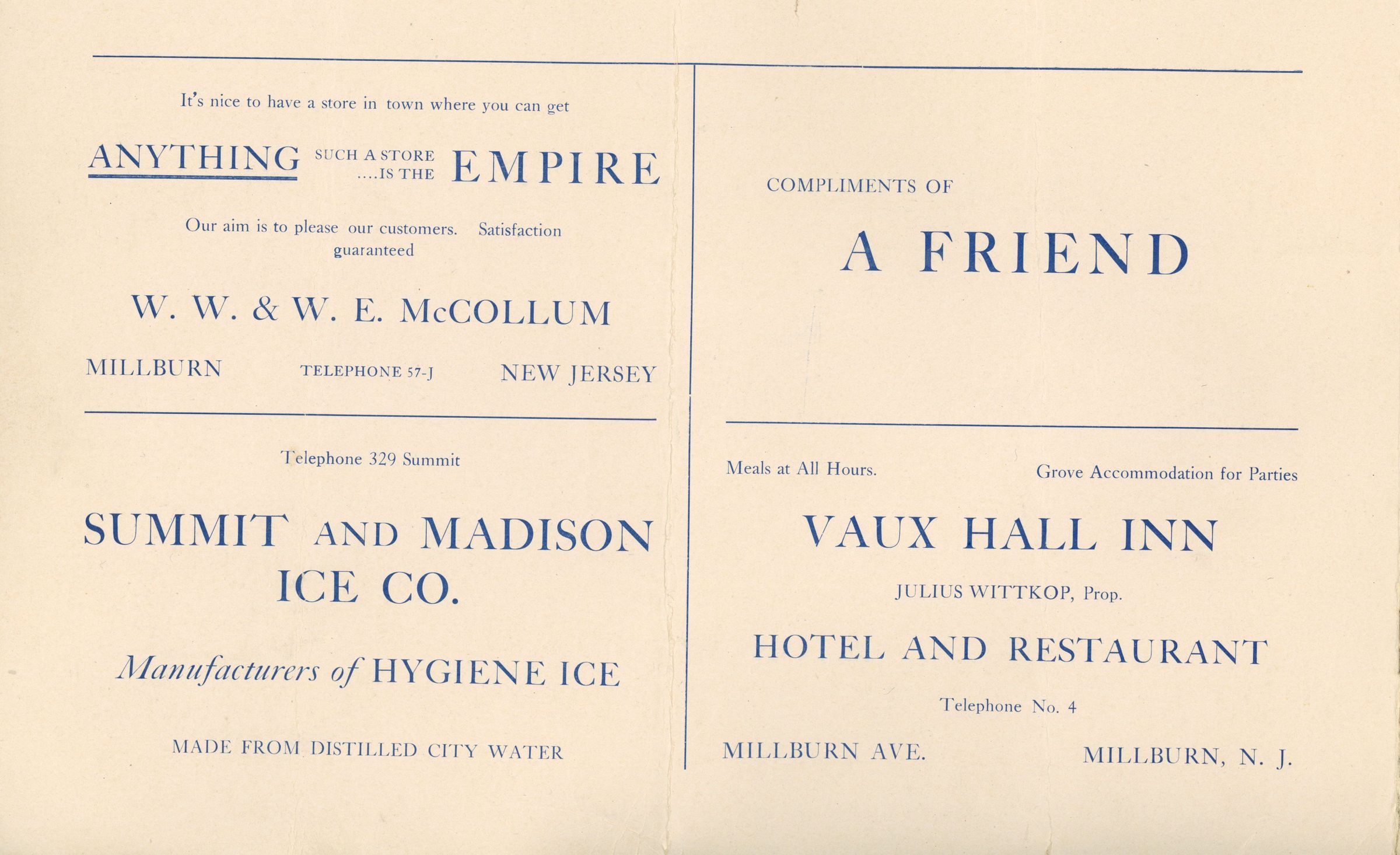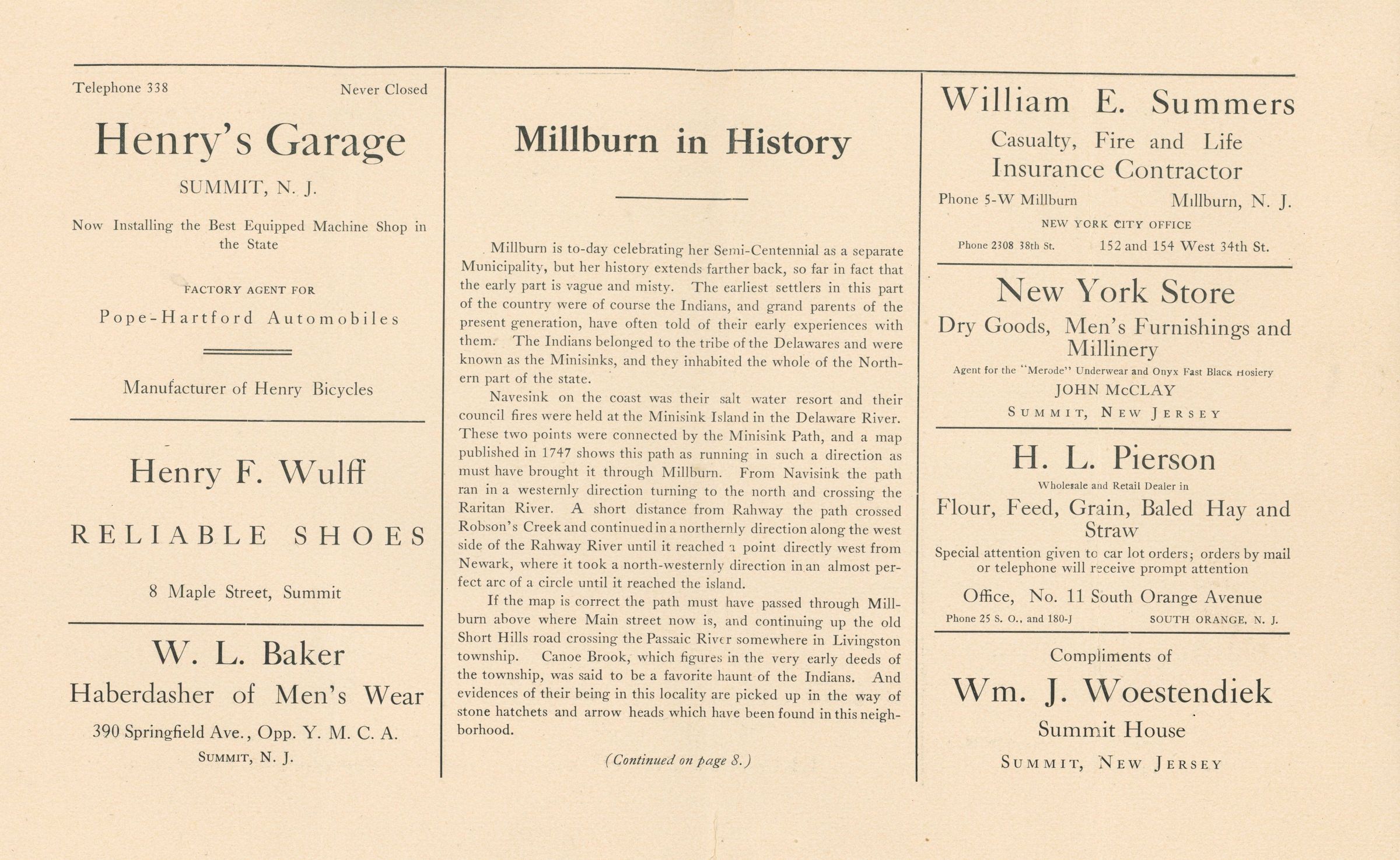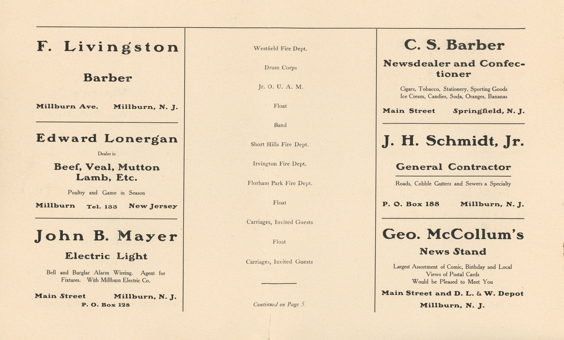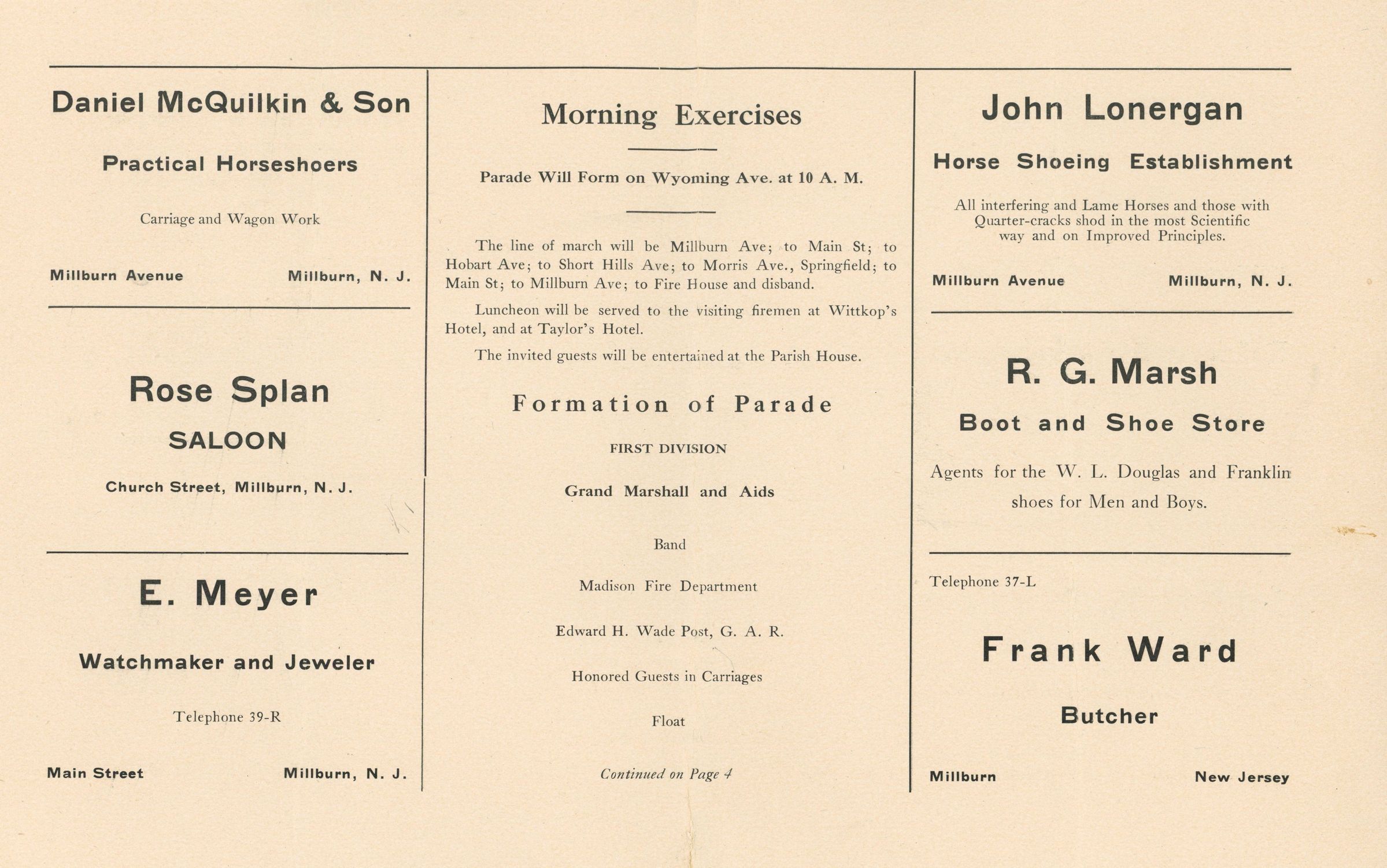 Semi-Centennial Celebration: Millburn Semi-Centennial Celebration Program, 1907