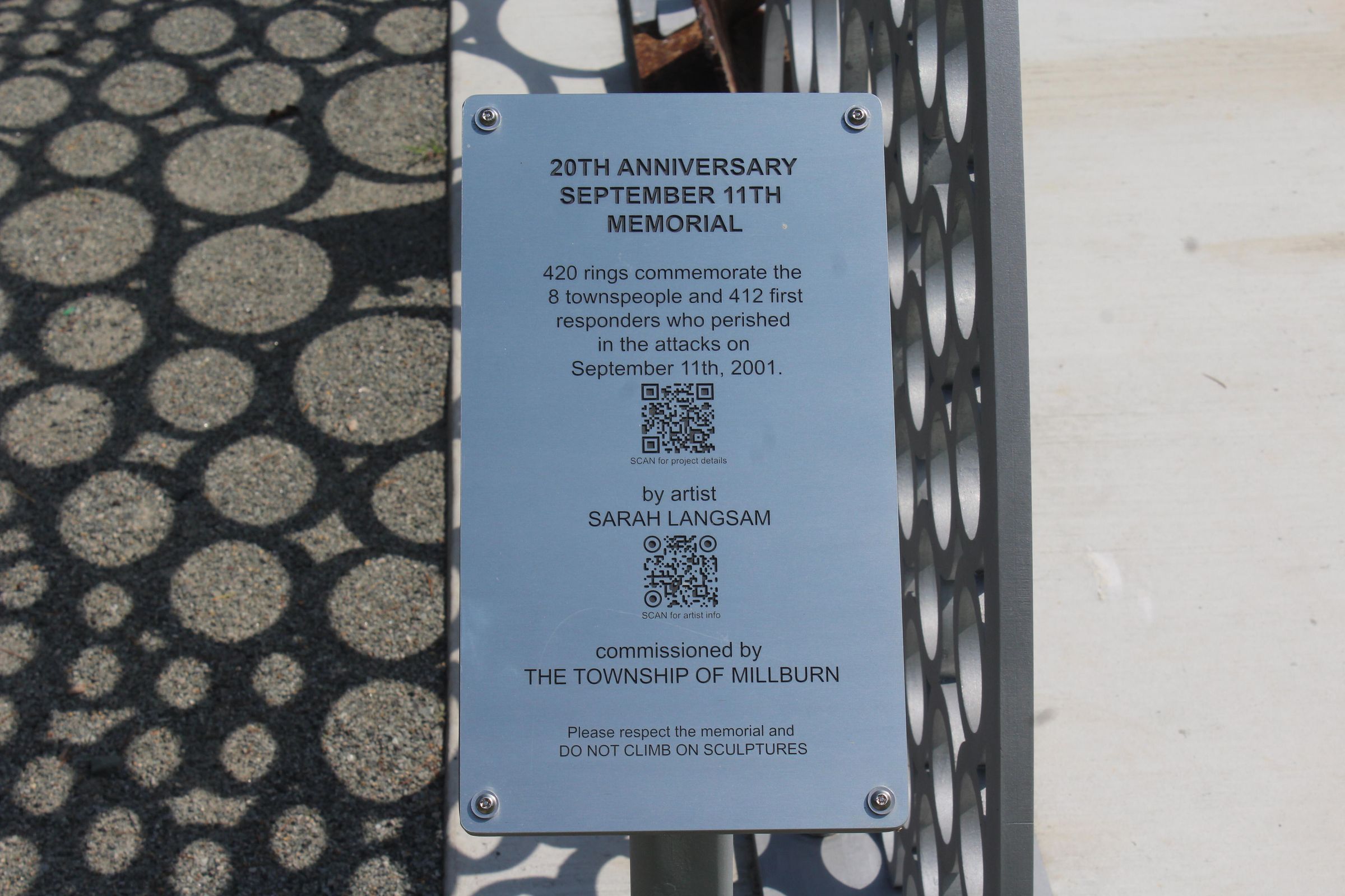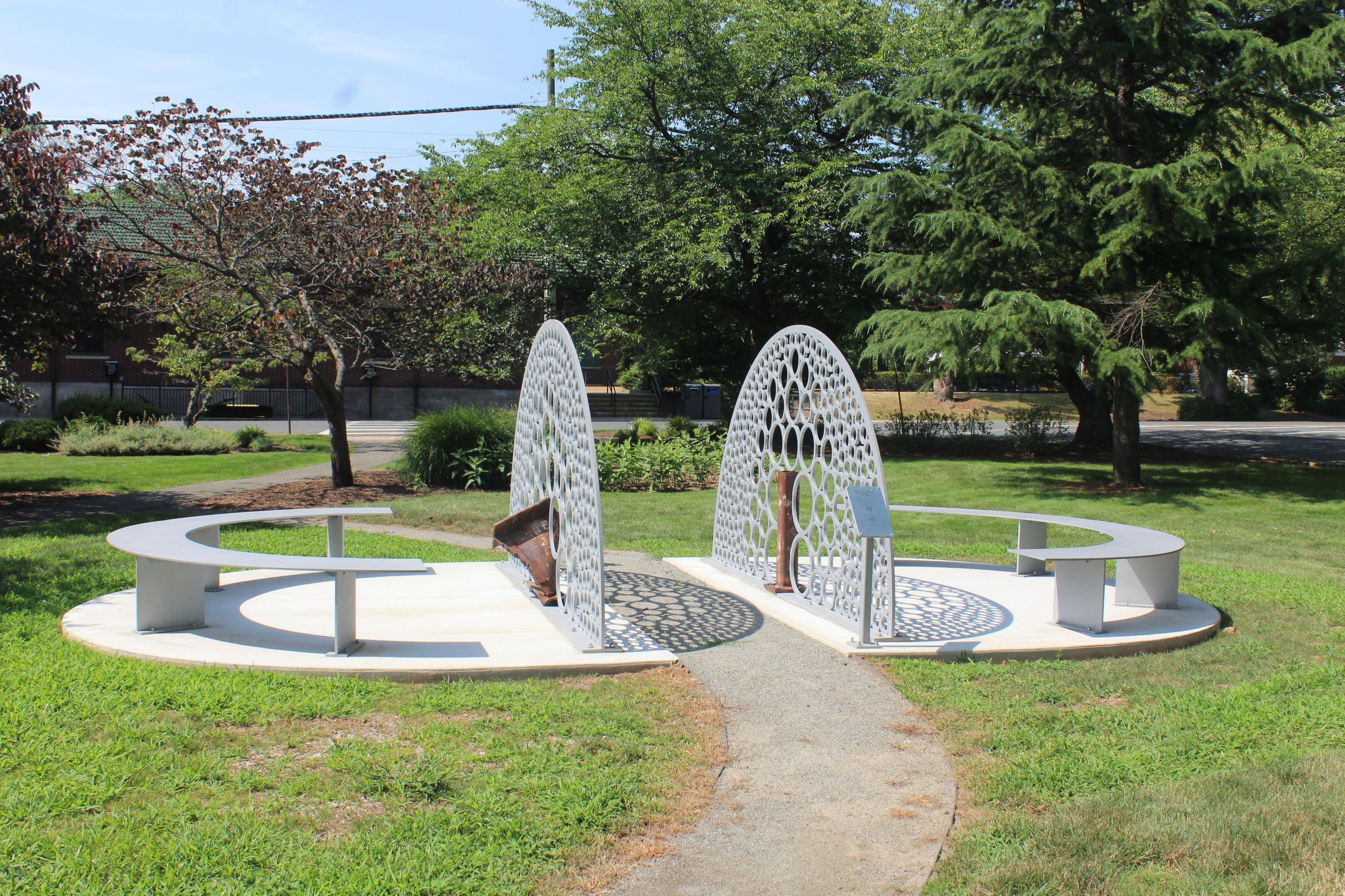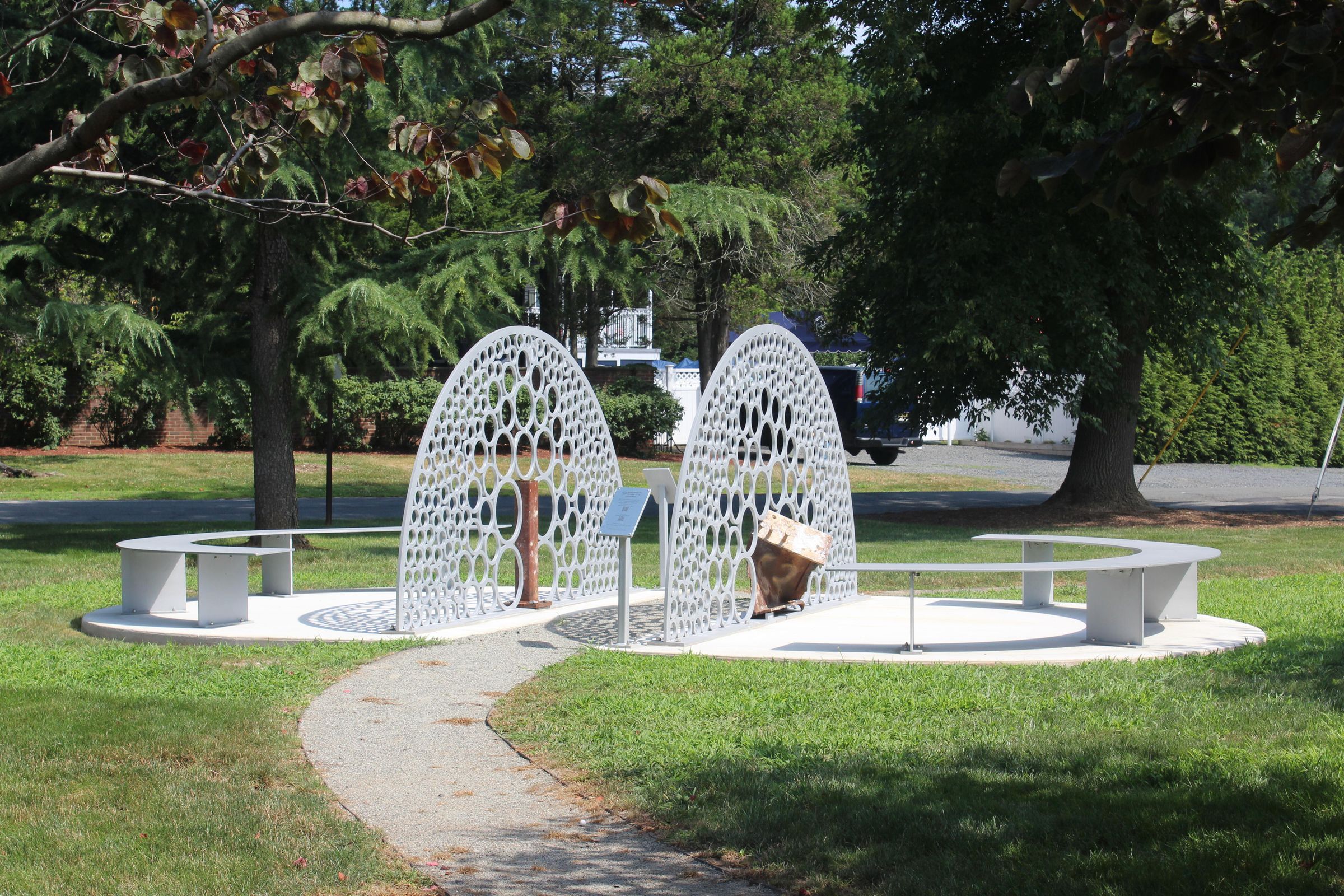 "20th Anniversary September 11th Memorial" sculpture commissioned by the Township of Millburn and created by artist Sarah Langsam. The sculpture is in the green next to the Millburn-Short Hills Historical Society Museum.Acquisition