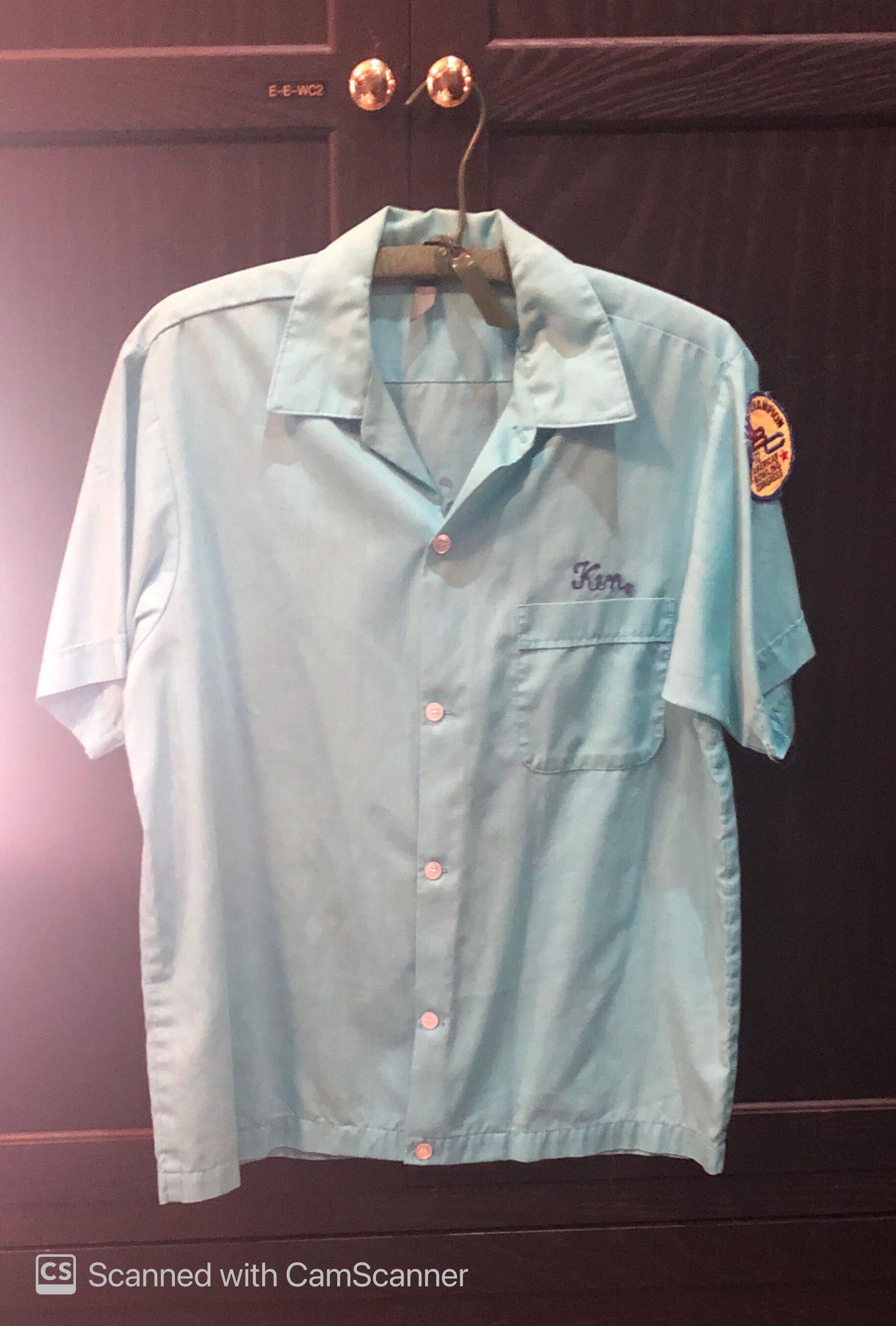 Turquoise Bowling Team shirt for "Ken" from the B'nai Brith team. "Ken" embroidered on the front