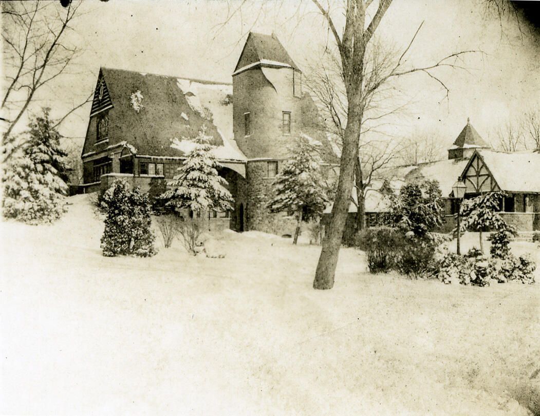 Stuart Hartshorn commissioned the building from Stanford White of McKim, Mead & White to serve as a hall for his fledging "ideal community. The design is based on White's admiration of the rustic cottages of Brittany. with its wooden structure, gabled roof and round tower. The building was completed in the summer of 1880 and served many functions. It was an early meeting place for the Christ Church congregation (prior to the construction of the church in 1883. It also served as the first home of the Short Hills Day School. In 1946, the Racquet's Club of Short Hills purchased the building and adjacent tennis courts from the Hartshorn Estate. The Racquets Club burned down in a major fire in February 1978.