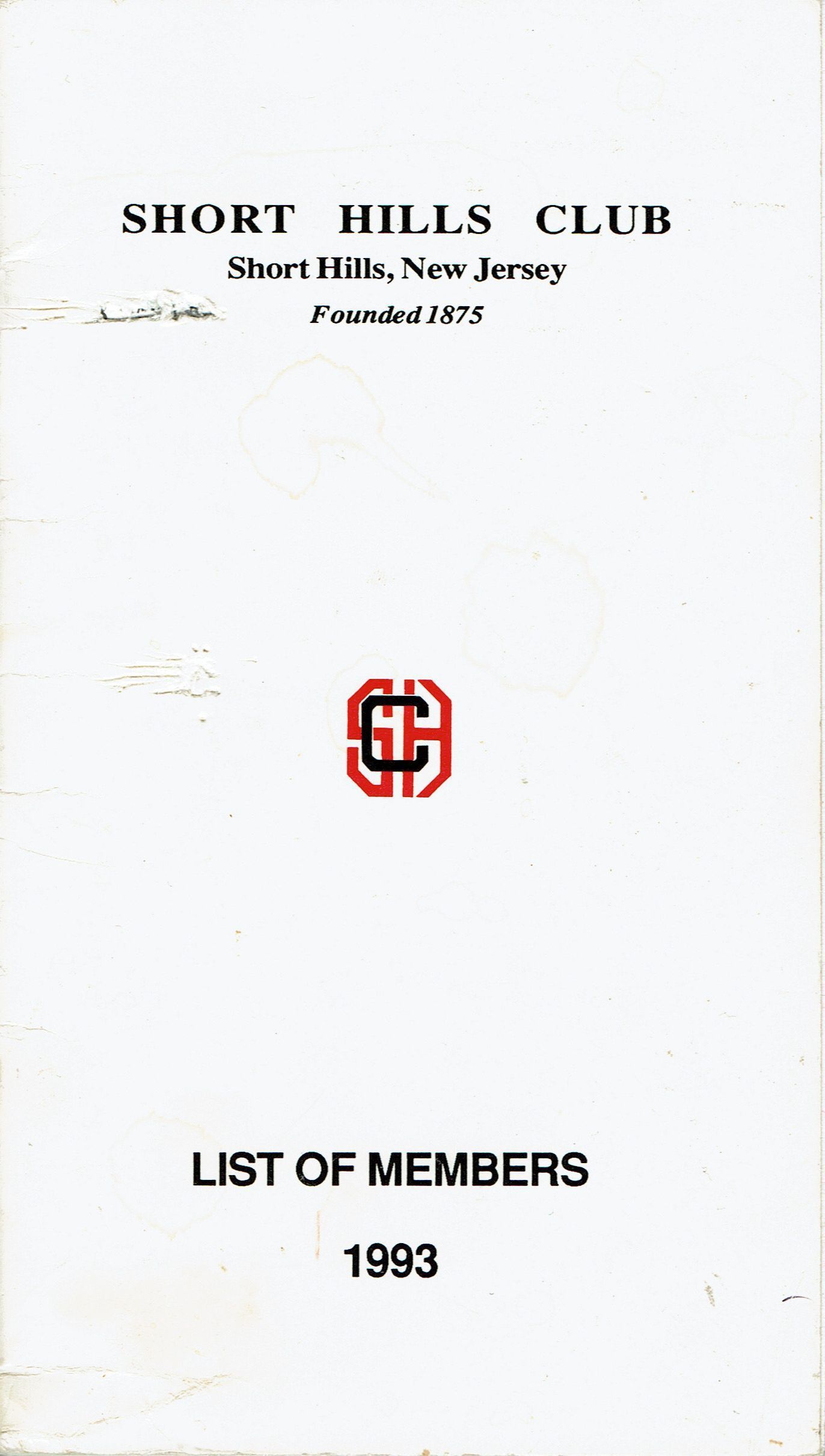 Short Hills Club List of Members 1993. 48 pp. Names and addresses of members, list of committees and 1992-1993 accolades. Officers were: Frederick L. rhodes (President), B. Michael Pisani (Vice President), Clarence E. Williams (Treasurer), Carl W. Klemme (Assistant Treasurer), William K. Hutchinson (Secretary) and Christopher R. Seelback (Assistant Secretary).Acquisition