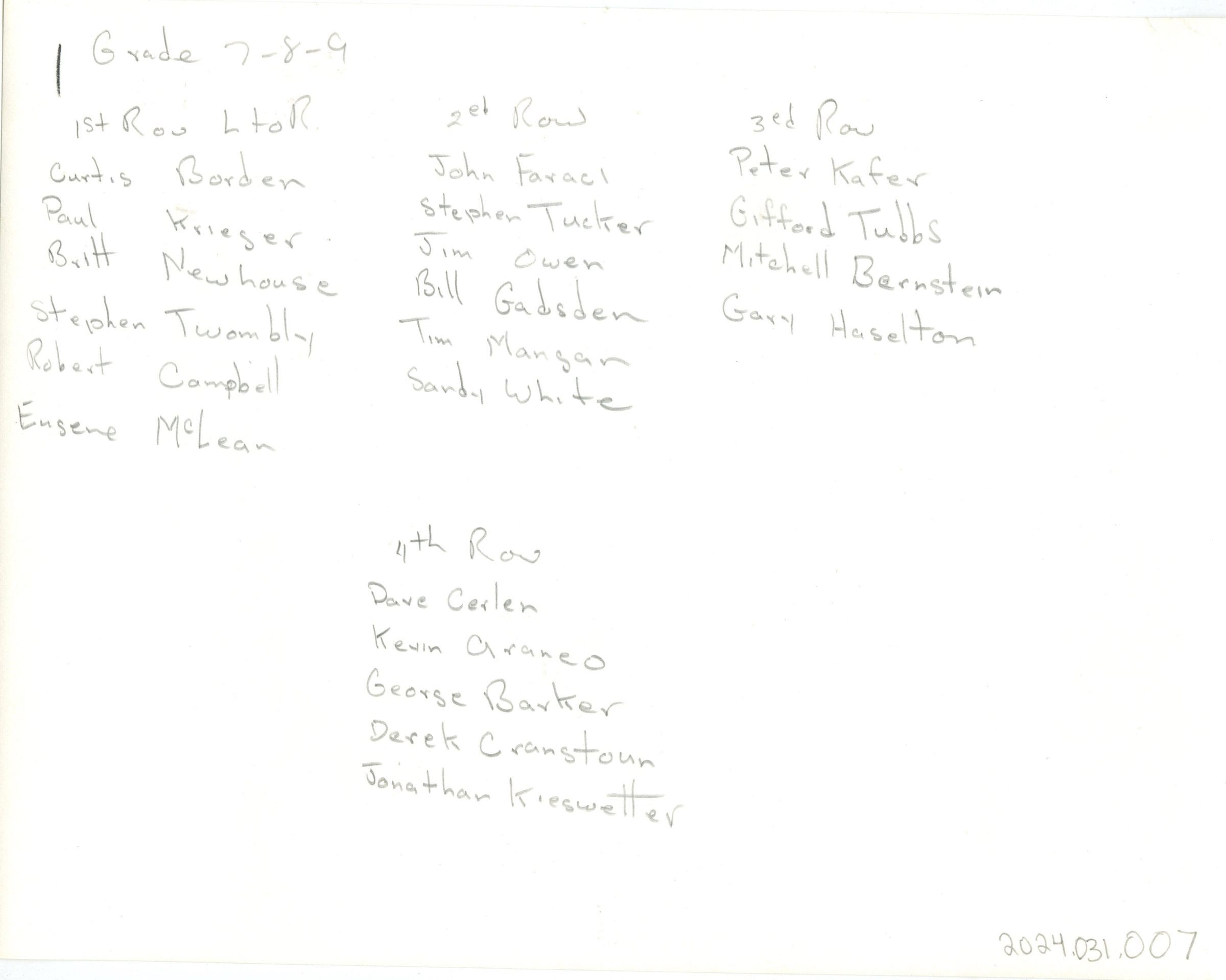 Third Row(from left to right): Peter Kafer, Gifford Tubbs, Mitchell Bernstein, Gary Haselton