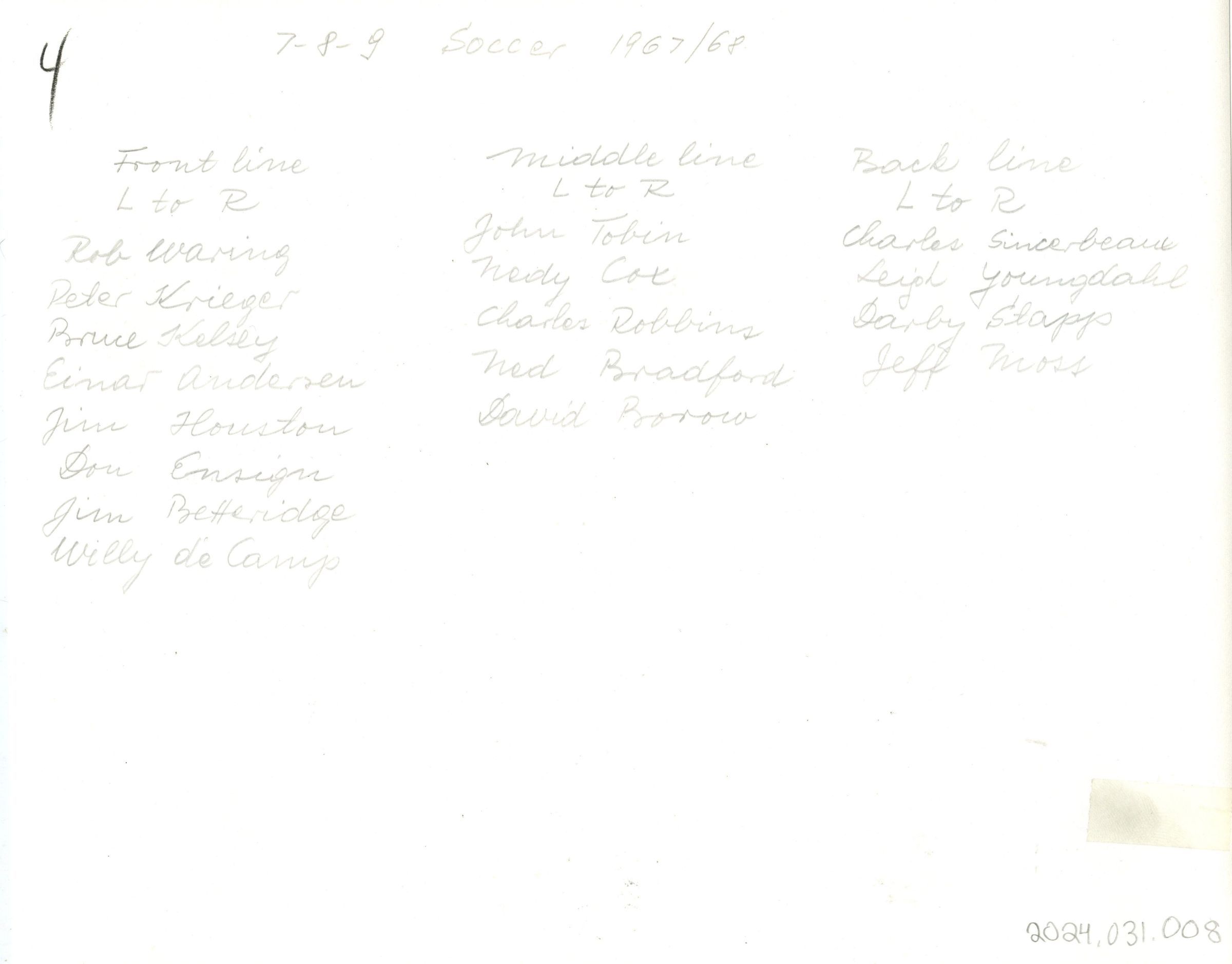 Short Hills Country Day School: Boys Soccer Team, 1967-1968Entry/Object ID