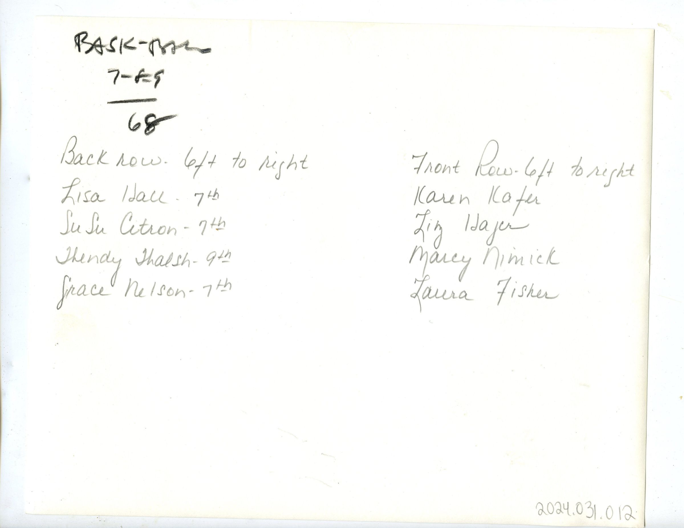 Short Hills Country Day School: Girls Basketball Team, 1968Entry/Object ID