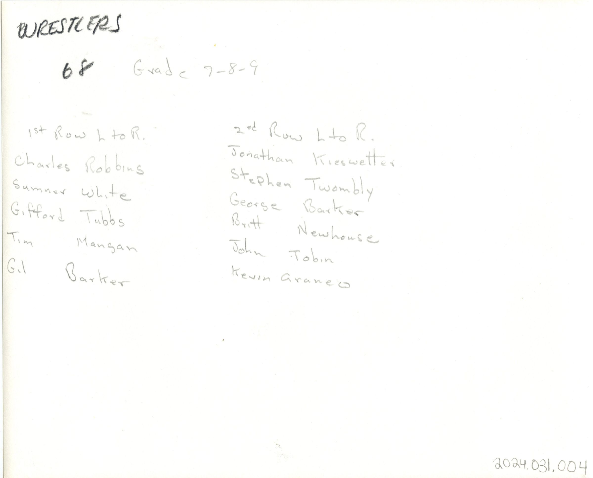 Short Hills Country Day School: Wrestling Squad, 1968Entry/Object ID
