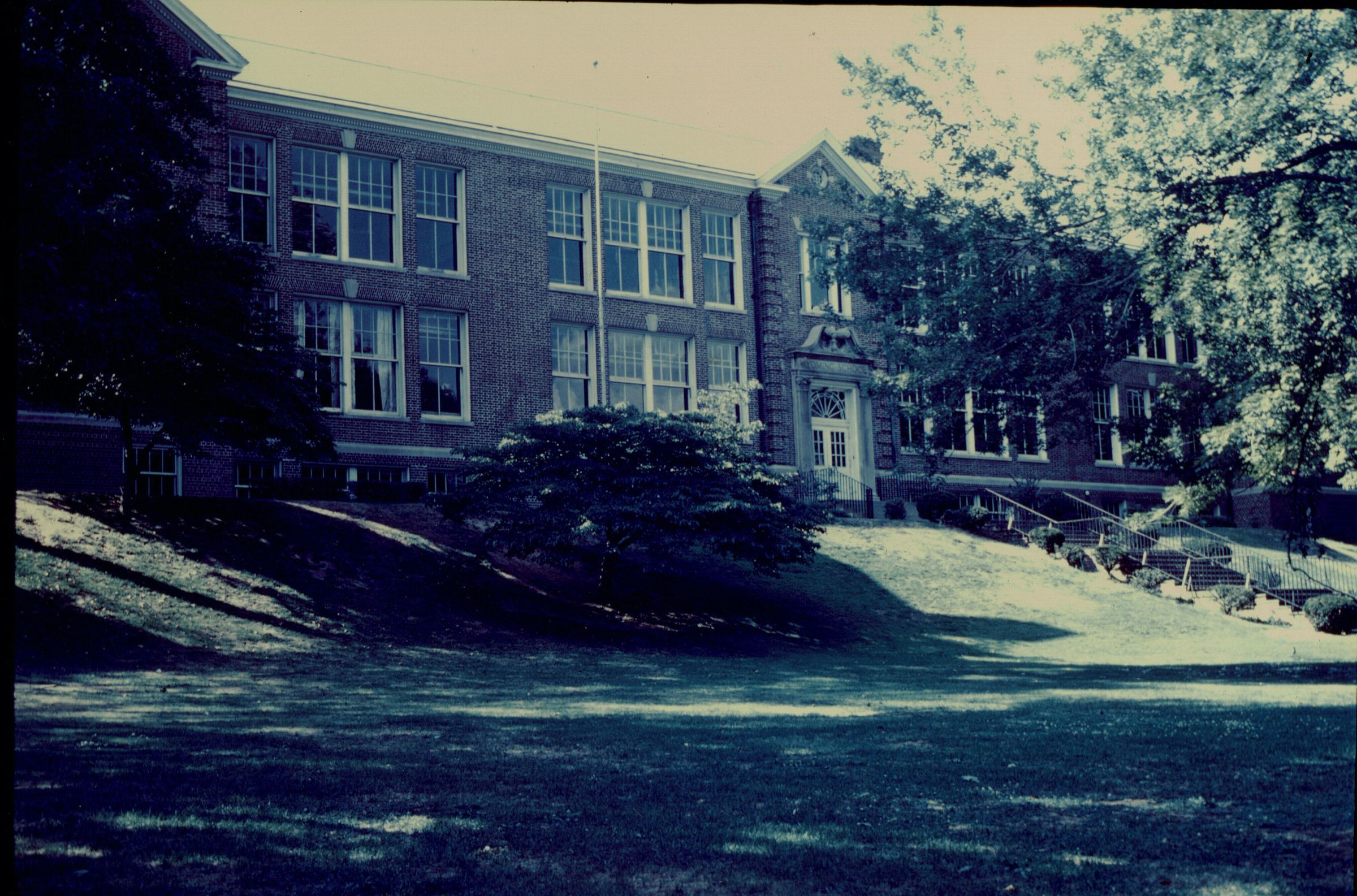 This image shows the school after the 1952 renovation, at which time the center section of the original building was torn down and the entire building was modernized. A new brick facade was also installed.Acquisition